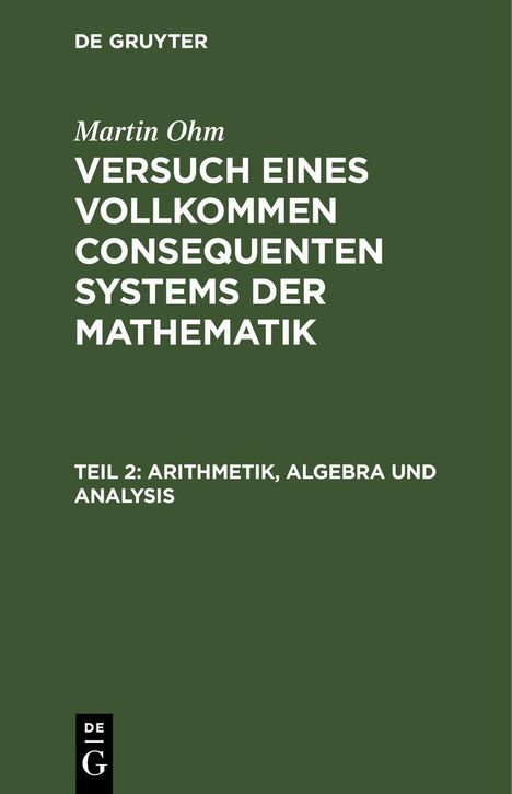 Martin Ohm: Arithmetik, Algebra und Analysis, Buch, Buch