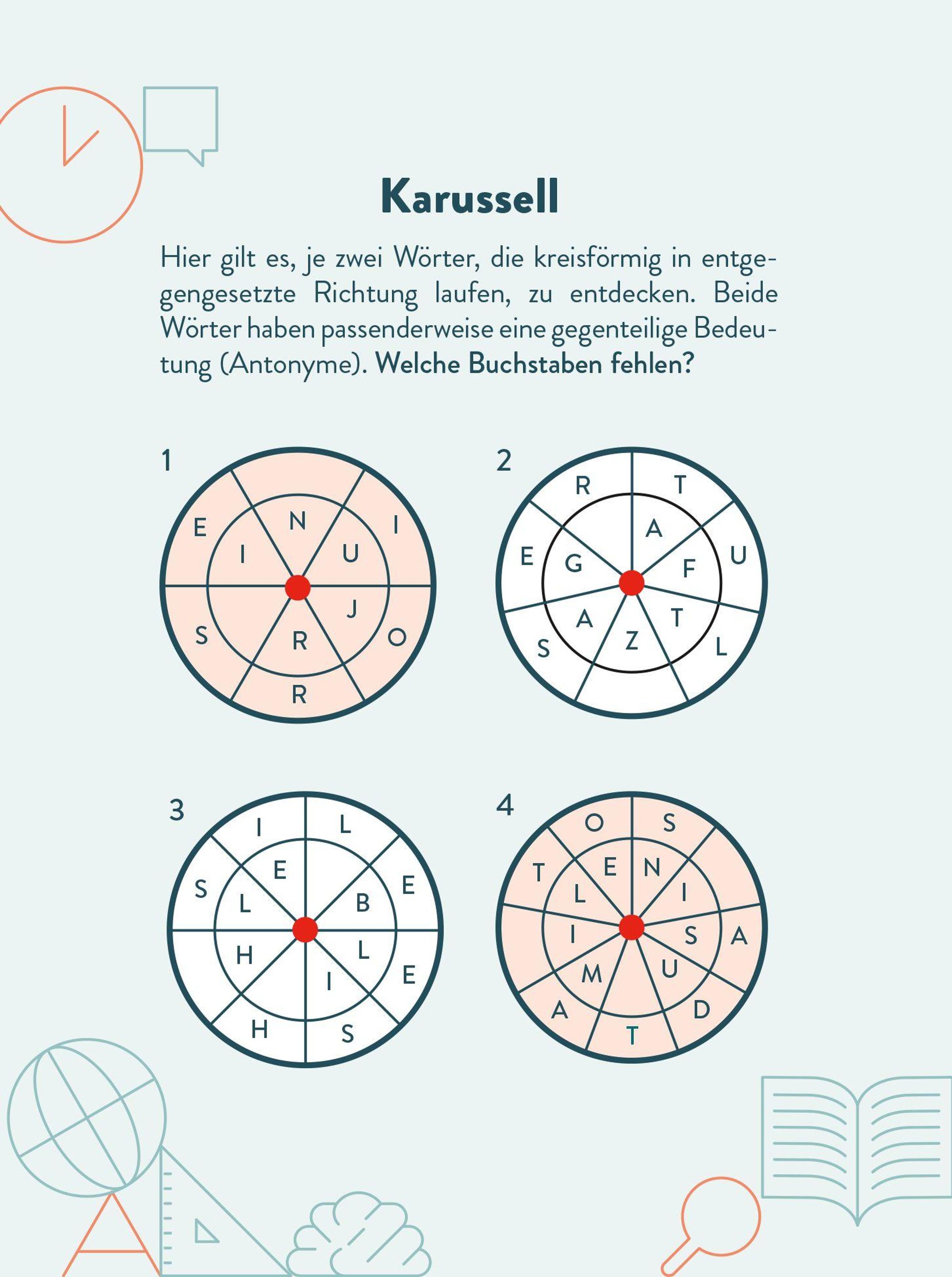 Abwechslungsreiche Zahlenrätsel, knifflige Wort- und Buchstabenrätsel, spannende Denk- und Textaufgaben und viele weitere Gehirnjogging-Rätsel machen deinen Kopf fit!