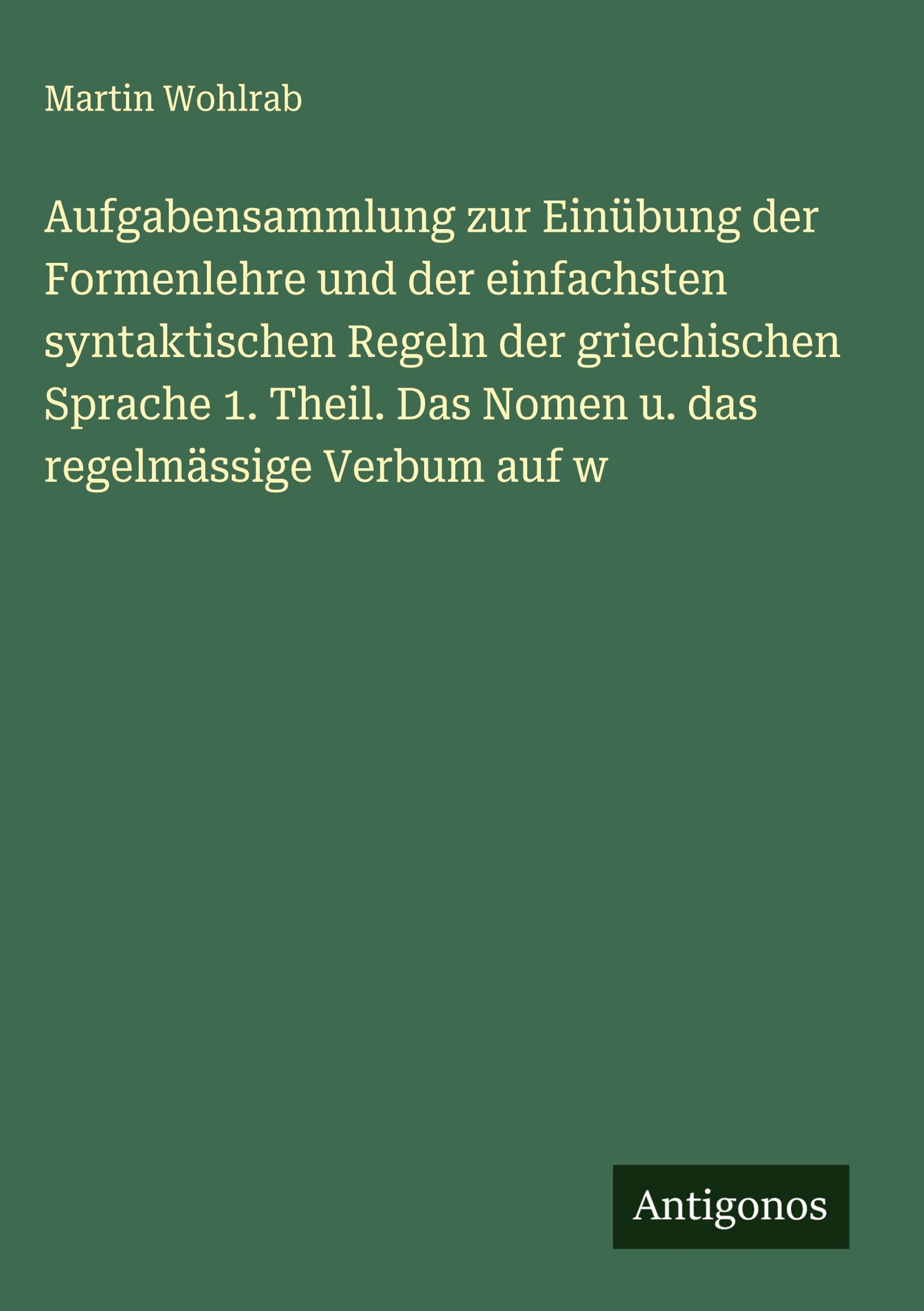 Aufgabensammlung zur Einübung der Formenlehre und der einfachsten syntaktischen Regeln der griechischen Sprache 1. Theil. Das Nomen u. das regelmässige Verbum auf w