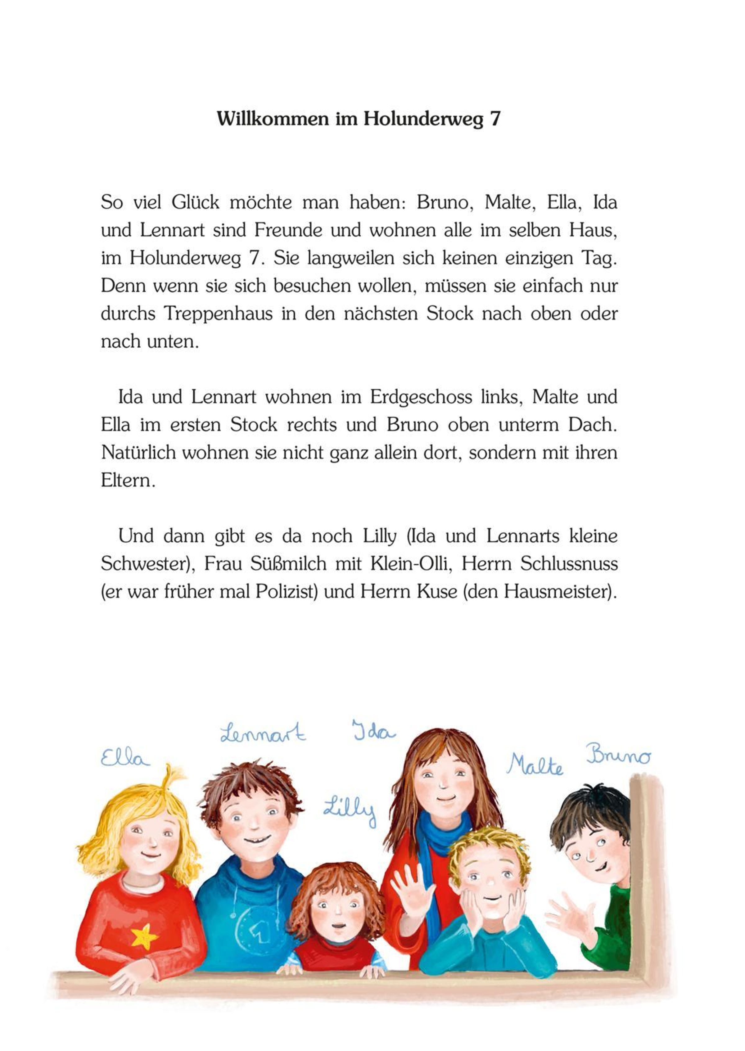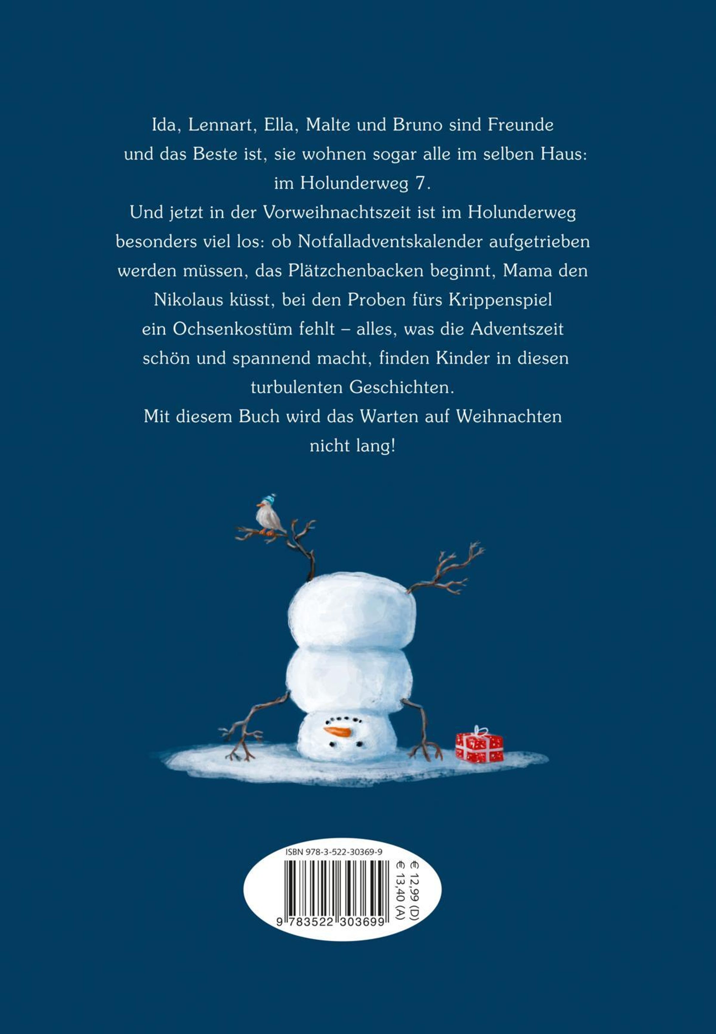 Ida, Lennart, Ella, Malte und Bruno sind Freunde und das Beste ist, sie wohnen sogar alle im selben Haus: im Holunderweg 7. Und jetzt in der Vorweihnachtszeit ist im Holunderweg besonders viel los: ob Notfalladventskalender aufgetrieben werden müssen, das Plätzchenbacken beginnt, Mama den Nikolaus küsst, bei den Proben fürs Krippenspiel ein Ochsenkostüm fehlt alles, was die Adventszeit schön und spannend macht, finden Kinder in diesen turbulenten Geschichten.