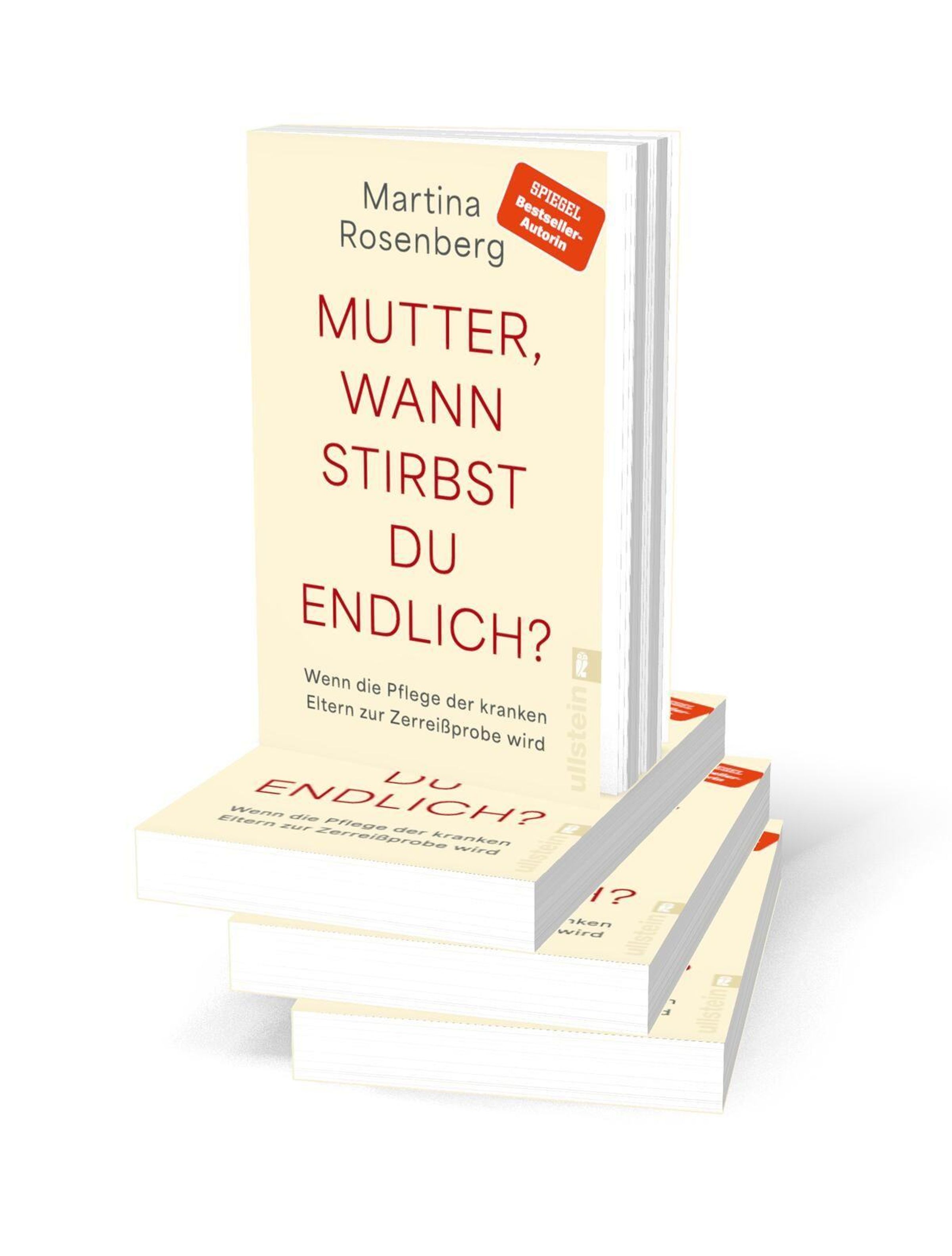 Buchtitel in roter Schrift: "Mutter, wann stirbst du endlich?" Autorin: Martina Rosenberg. Ullstein-Verlagslogo rechts., Buch