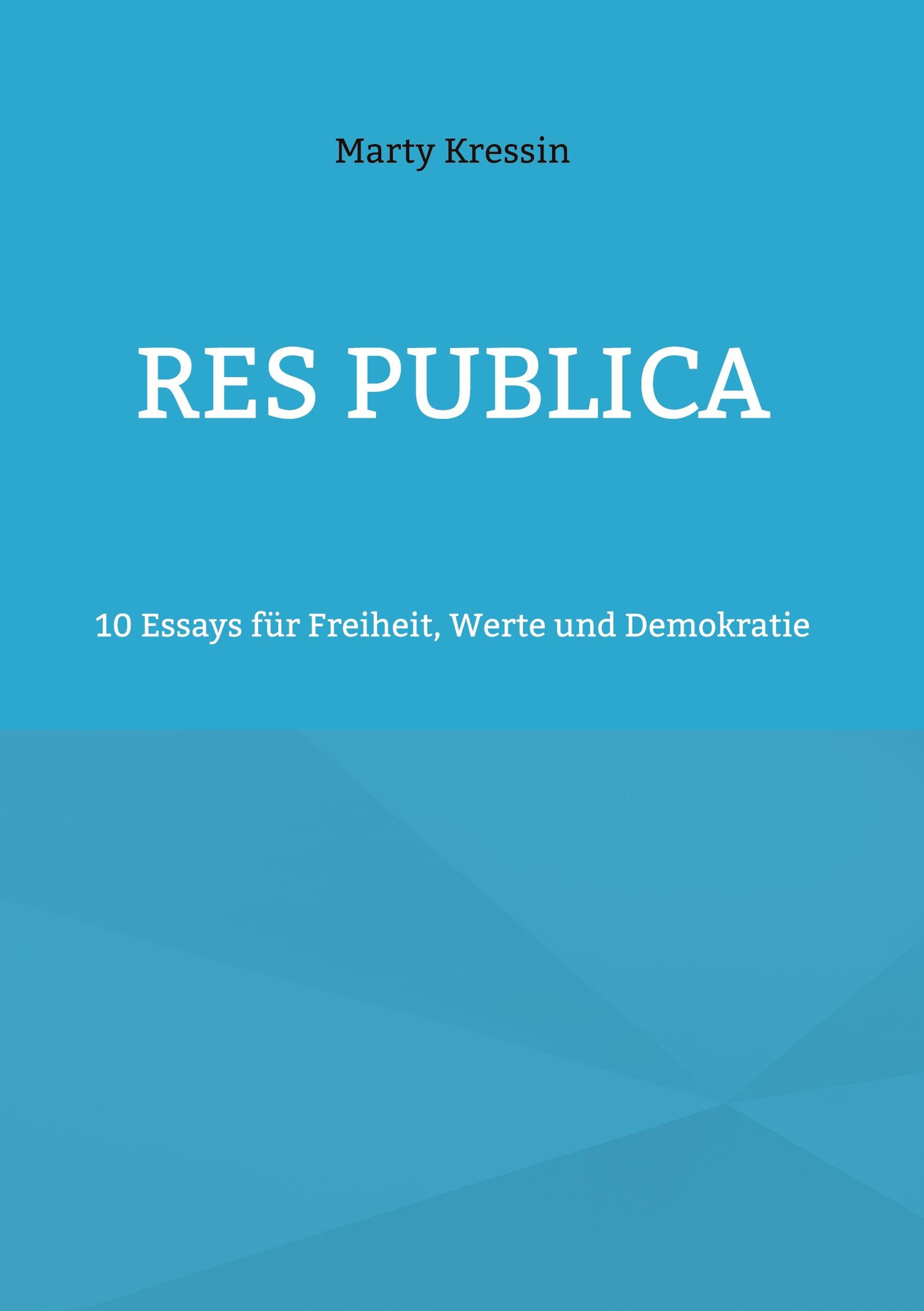 "Res Publica" oben, darunter "10 Essays für Freiheit, Werte und Demokratie", blauer Hintergrund, schlichte Gestaltung., Buch