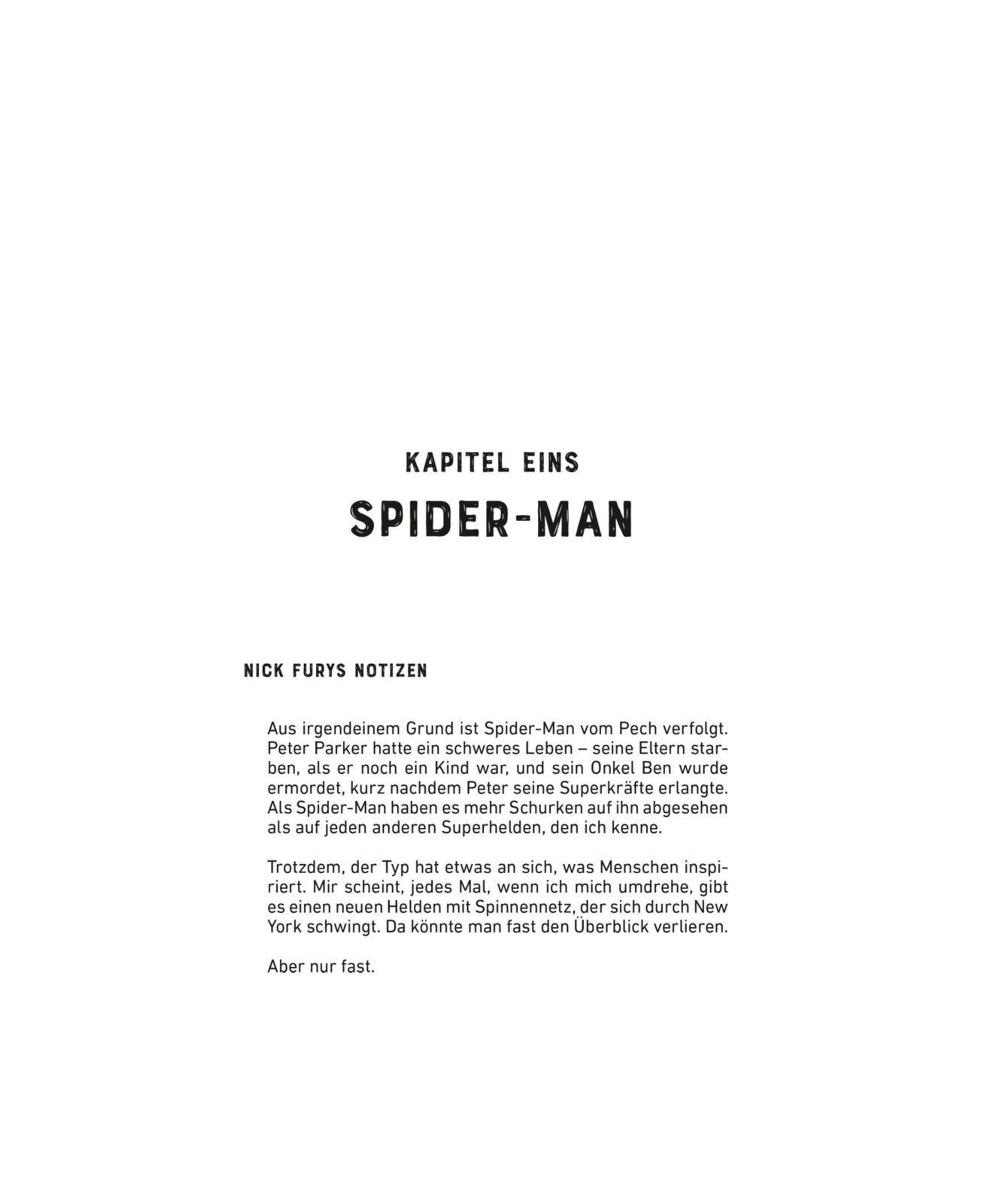 Übersichtlich gegliedert nach Spider-Man, Guardians of the Galaxy und Avengers finden sich hier alle wichtigen Charaktere auf einen Blick. Die klare Struktur mit informativen Seitenleisten macht das Nachschlagen kinderleicht und lädt zum Schmökern und Entdecken ein.