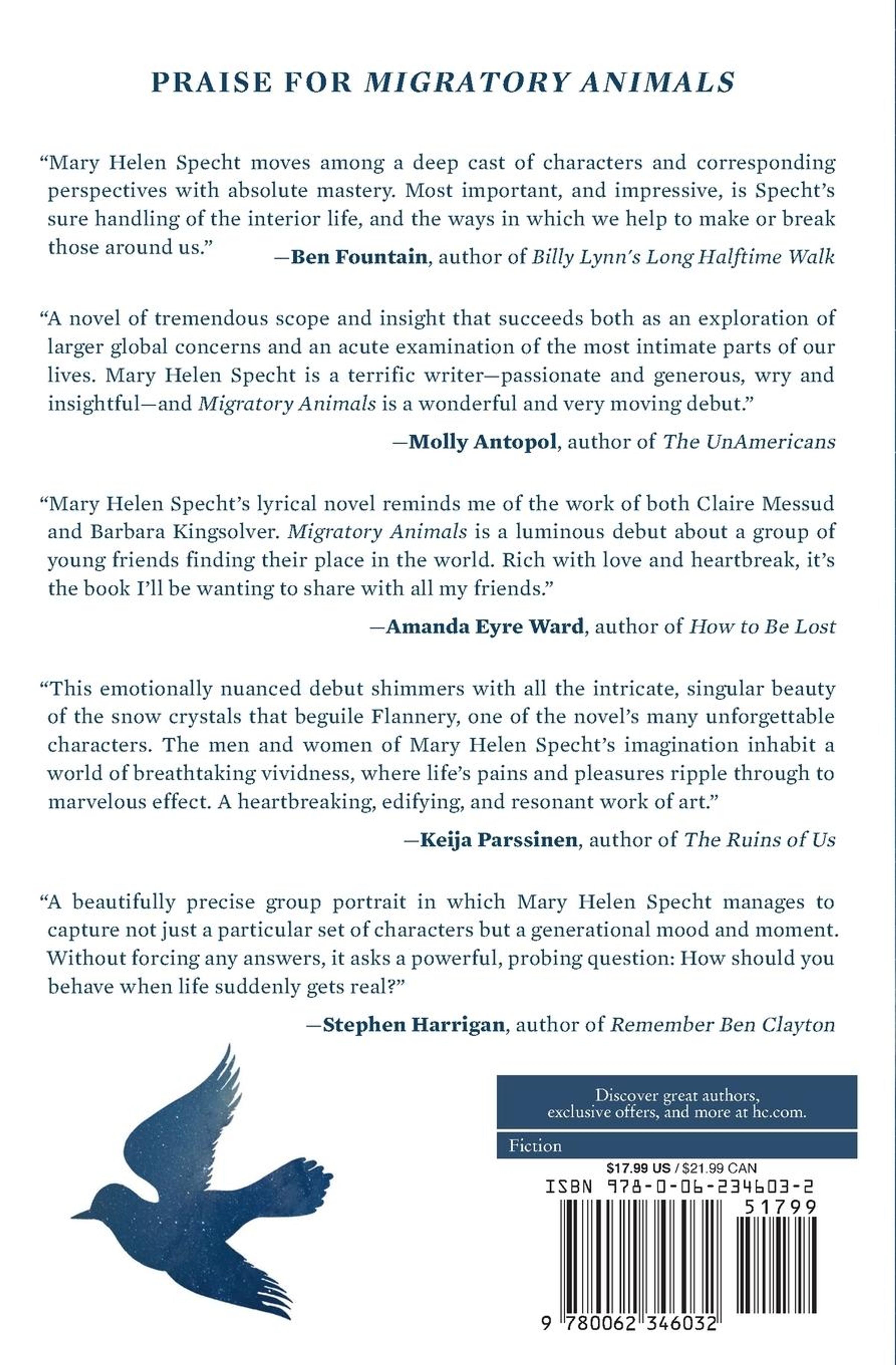 A mesmerizing debut from an exciting young writer, Migratory Animals is a moving, thought-provoking novel, told from shifting viewpoints, about the meaning of home and what we owe each other---and ourselves.