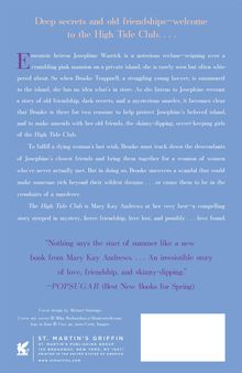 Eccentric heiress Josephine Warrick is a notorious recluse - reigning over a crumbling pink mansion on a private island, she is rarely seen but often whispered about. So when Brooke Trappnell, a struggling young lawyer, is summoned to the island, she has no idea what's in store. As she listens to Josephine recount a story of old friendship, dark secrets, and a mysterious murder, it becomes clear that Brooke is there for two reasons: to help protect Josephine's beloved island, and to make amends with her old friends, the skinny-dipping, secret-keeping girls of the The High Tide Club.