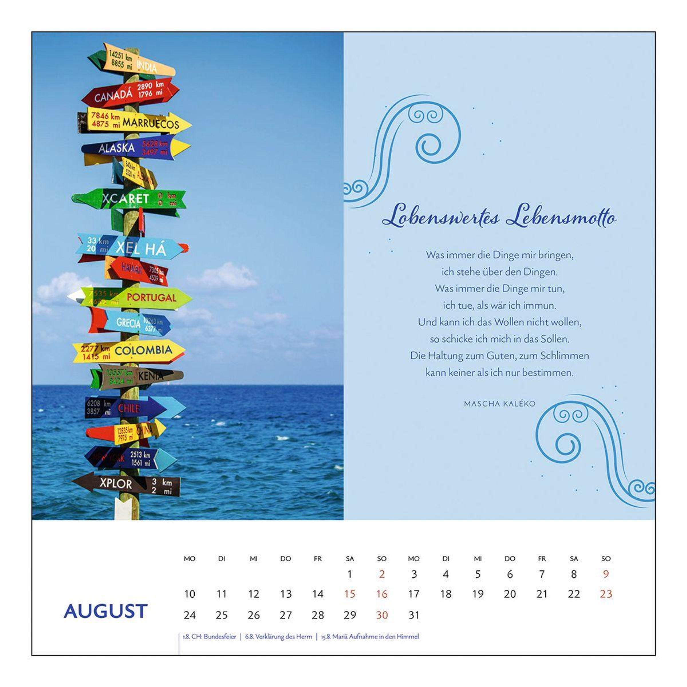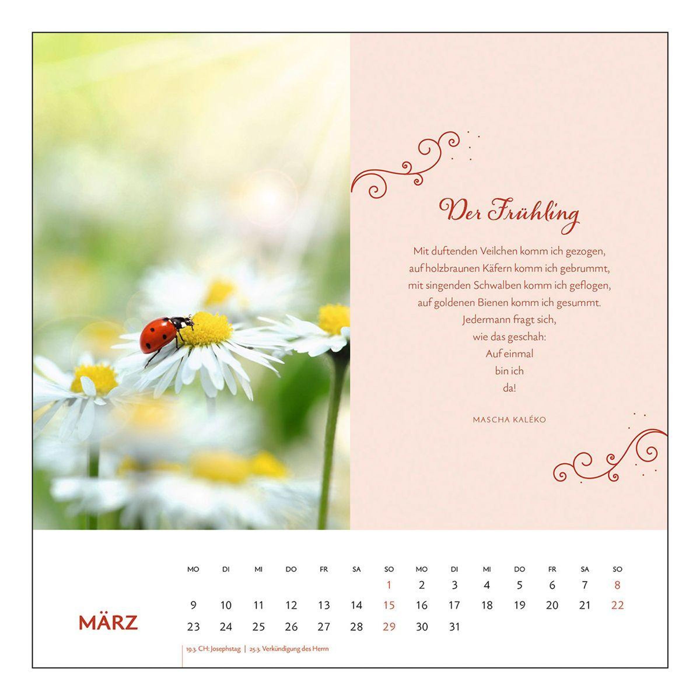 Mascha Kalékos zeitlos schöne Gedichte waren nie außer Mode, werden oft auf Glückwunsch- und Segenskarten und in Andachten verwendet. Aktuell werden sie durch die Vertonungen der Liedermacherin Dota Kehr auch einem jüngeren Publikum stärker bekannt. In diesem Postkartenkalender sind ihre schönsten Verse mit stimmungsvollen Naturaufnahmen illustriert. Aus jedem Kalenderblatt können Sie je zwei Postkarten heraustrennen und die poetischen Worte und Bilder weiterschenken.
