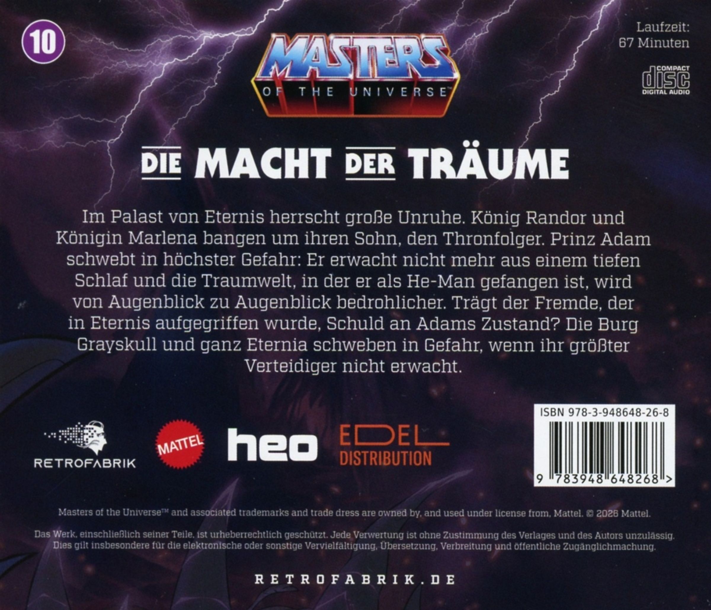 Professionelle Sprecher, ein Sounddesign das ein kinoreifes Erlebnis bietet, epische Musik und packende Geschichten werden euch in die Schlachten von Eternia versetzen. Von atemberaubenden Kämpfen bis hin zu bewegenden Charaktermomenten – jedes Kapitel dieser Hörspielserie wird euch in den Bann ziehen und euch das Gefühl geben, Teil dieser legendären Welt zu sein.