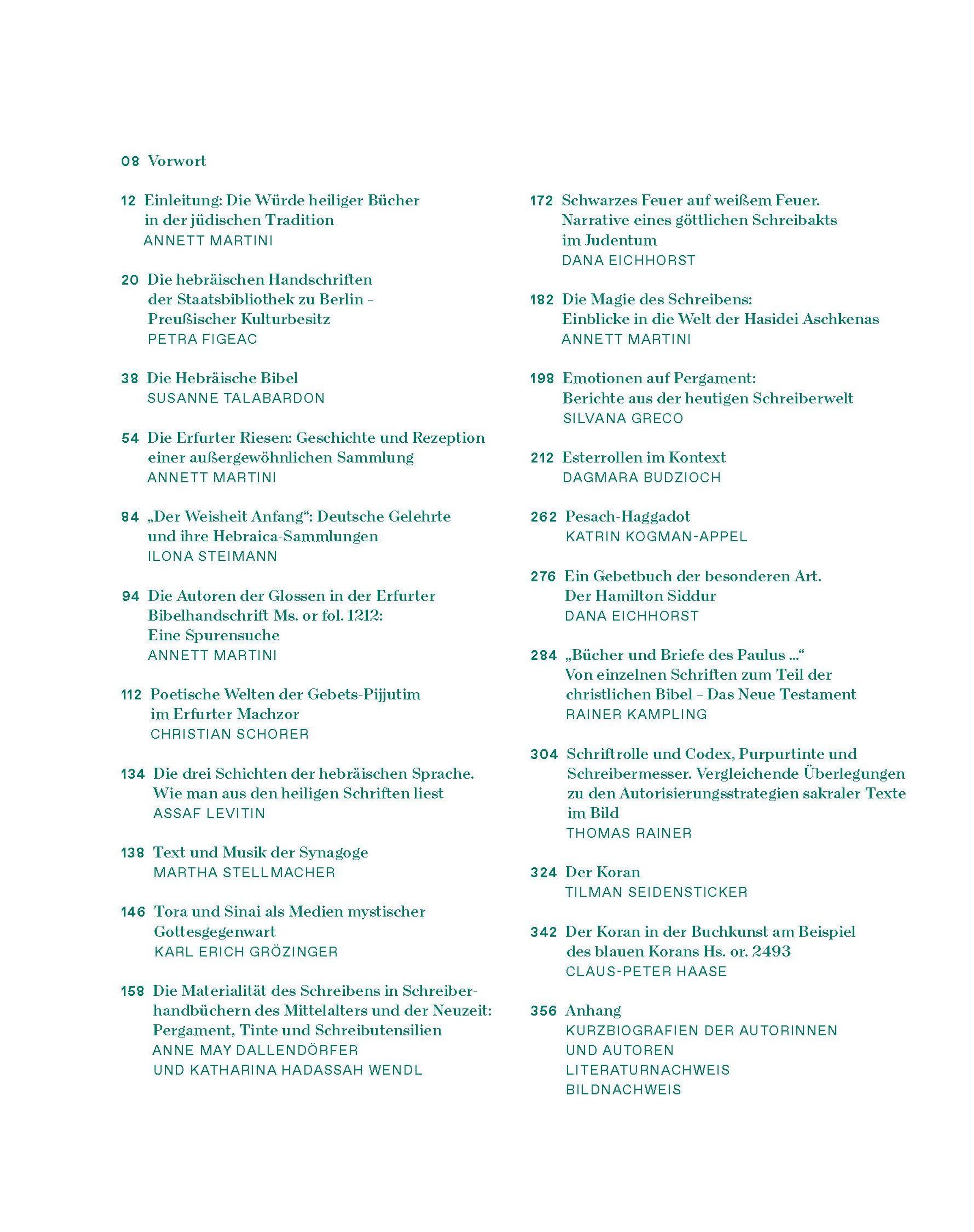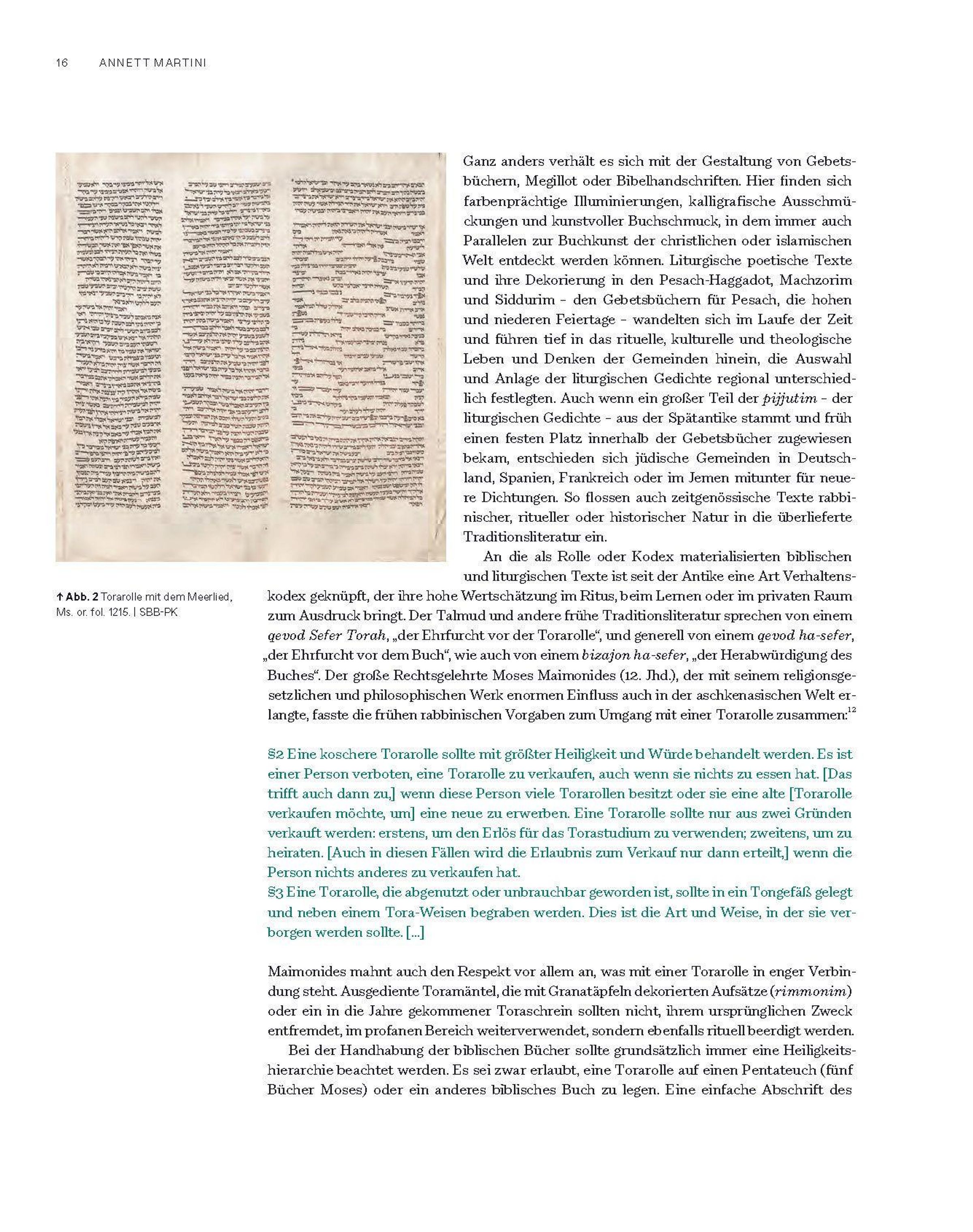 Holy texts are at the heart of the diverse Jewish cultures; by regular reading of them, Jews all over the world reassure themselves of their community and construct a place of cultural identity beyond the profane. The sacred text not only defines beliefs; it also represents the sensory expression of divine revelation. Using selected manuscripts from the holdings of the Staatsbibliothek Berlin, this volume sheds light on the origin and materiality of the Hebrew Bible, the poetry and musical performance of Jewish liturgical texts, strict rabbinical rules for producing Torah scrolls, and the art of Megillot and Passover Haggadot. The richly illustrated contributions are complemented by explanations of Christian and Muslim scriptural traditions.