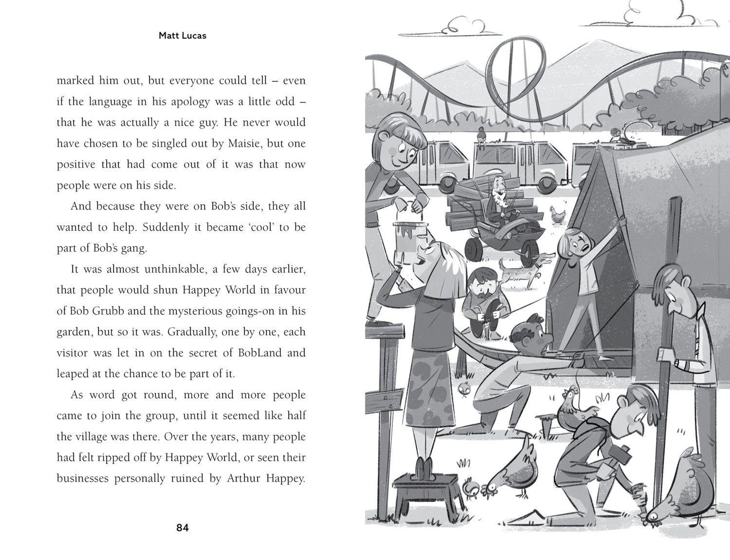 Bob Grubb and his family live on a ramshackle smallholding backing on to the world-renowned theme park, Happey World, run by Arthur Happey and his dreadful granddaughter, Maisie. When Bob accidentally gets into Maisie's bad books, he is banned from Happey World - FOR EVER. What is an entrepreneurial boy to do? Build his own theme park in his back garden, of course! With the help of friends and family, BOBLAND is go! But with Arthur and Maisie doing everything in their power to derail Bob's plans, will they make it to the Grand Opening in one piece, where they are due to meet the king himself? And what is the big family secret that lurks beneath it all?