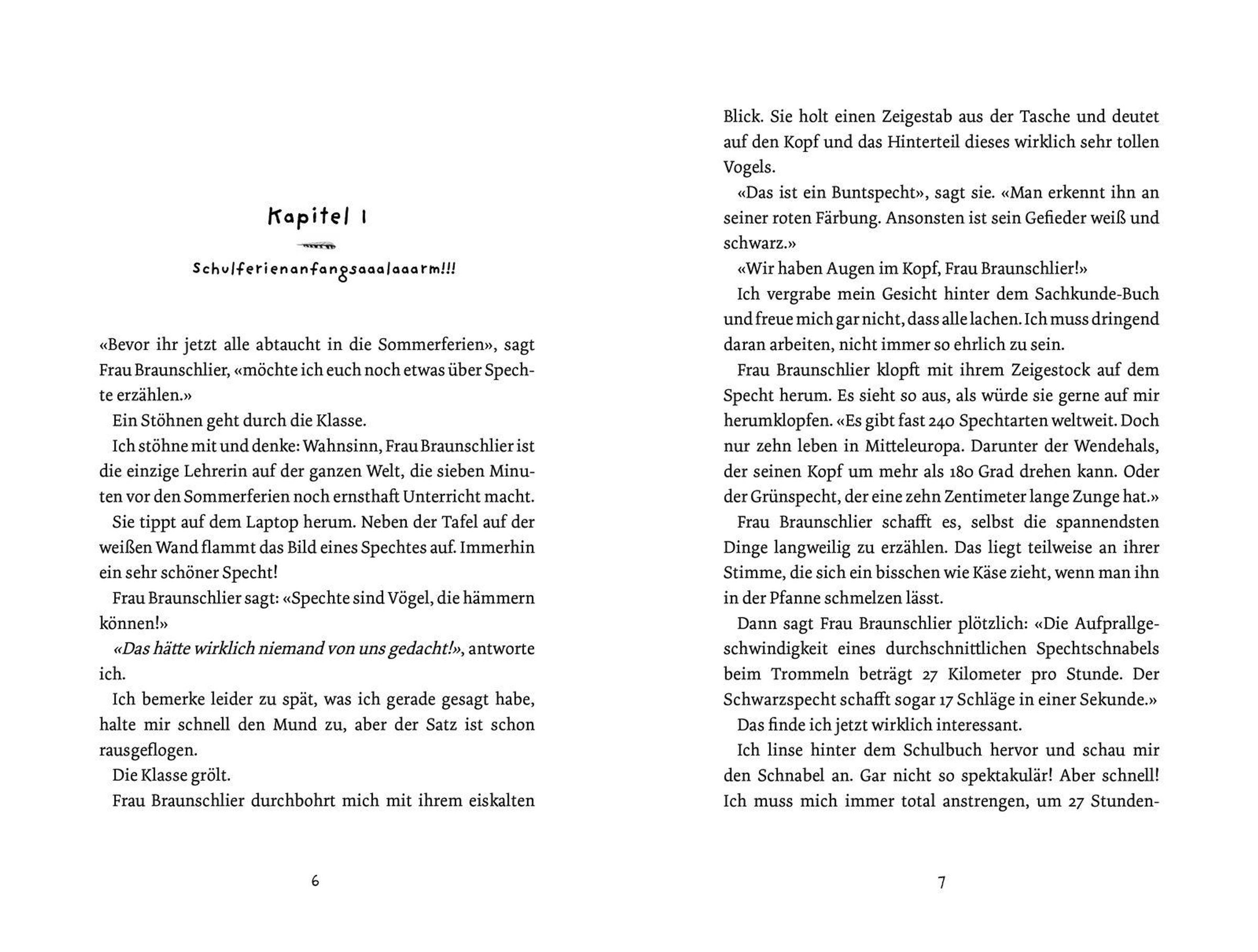 Gerade erst ist Winnies Familie in das kleine Kaff gezogen. Dieses Jahr werden sie in den großen Ferien zuhause bleiben - Mama hat einen neuen Job, und Papa will endlich in Ruhe sein Buch schreiben. Winnie freut sich auf chillige Ferien im Garten. Wenn da nicht der Nachbar, Herr Radetzky, wäre. Der hämmert, sägt und klopft ohne Unterlass an seiner Terrasse. Da hilft kein gutes Zureden! Doch dann lernt Winnie John kennen, und auf einmal ist es gar nicht mehr so schlimm, dass sie nicht weggefahren sind. Mit John schwimmt sie im See und erkundet den nahegelegenen Wald. Aber auch im Wald und am See klopft und hämmert es! Hier ist es zwar ein Specht, aber der ist fast noch merkwürdiger als Herr Radetzky - sogar so merkwürdig, dass er nachts in Winnies Träumen auftaucht! Und dann spitzen sich die Ereignisse zu, und es geschehen Dinge, die eigentlich nicht sein können ...