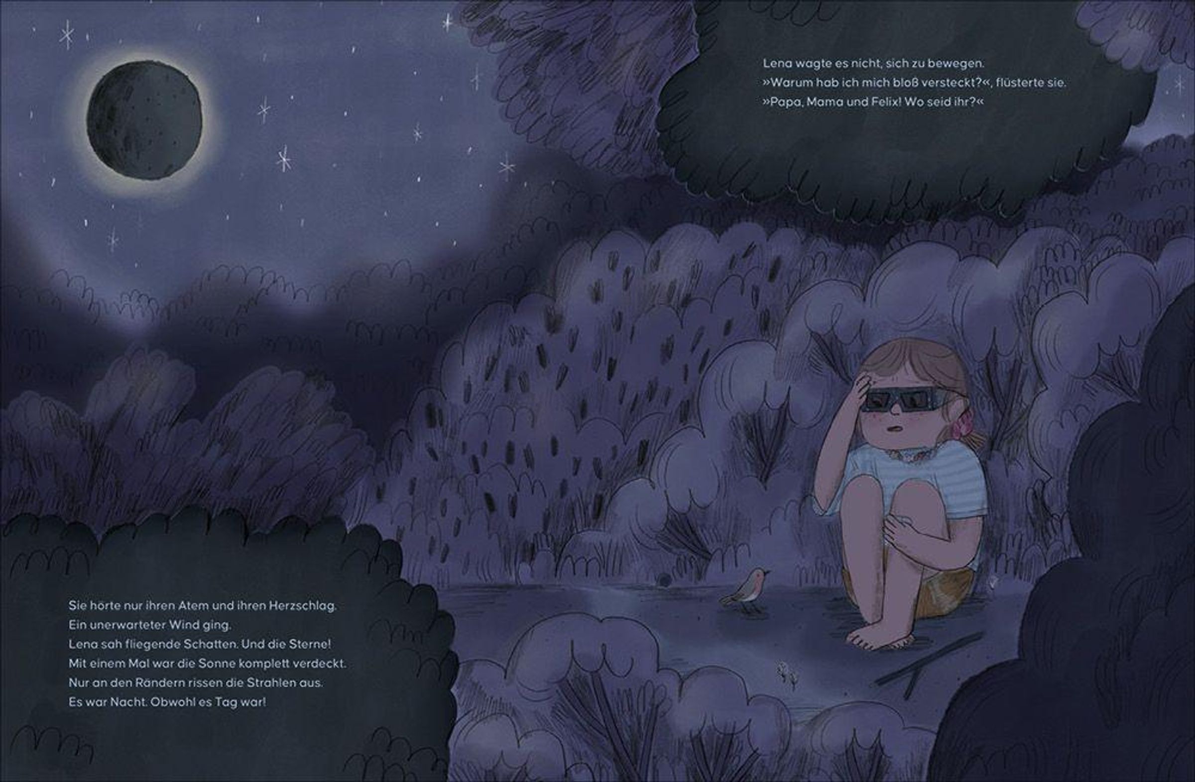 Lena mag die Sonne gar nicht: Wegen ihr muss sie sich eincremen und das Eis schmilzt viel zu schnell. Da kommt ihr die Sonnenfinsternis gerade recht: Es wird dunkler und dunkler, bis die Strahlen langsam wieder hervorblitzen und Lenas Nasenspitze kitzeln. Ziemlich magisch! Vielleicht ist die Sonne doch nicht so nervig? Ein MINT+ - Bilderbuch: Geschichten mit poetischen Bildern öffnen den Raum für das Erforschen unserer Welt.