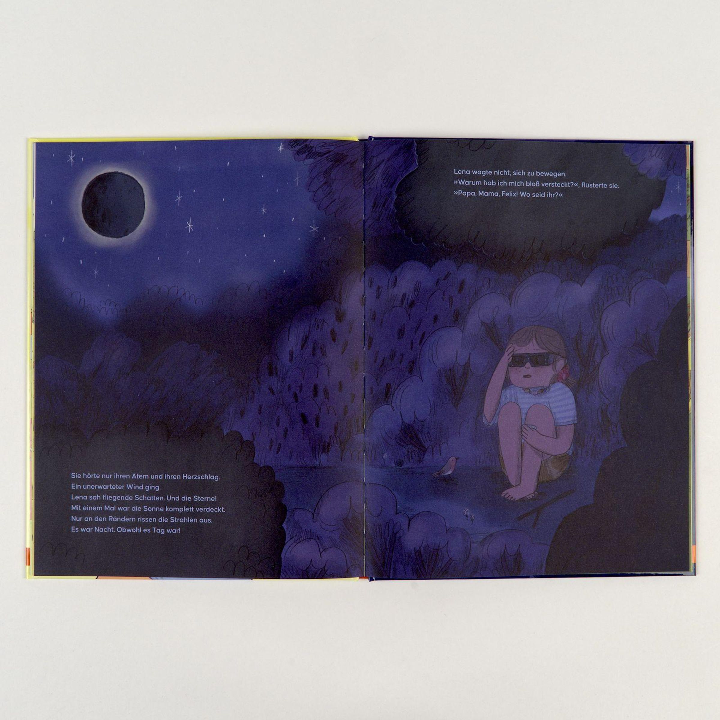 Lena mag die Sonne gar nicht: Wegen ihr muss sie sich eincremen und das Eis schmilzt viel zu schnell. Da kommt ihr die Sonnenfinsternis gerade recht: Es wird dunkler und dunkler, bis die Strahlen langsam wieder hervorblitzen und Lenas Nasenspitze kitzeln. Ziemlich magisch! Vielleicht ist die Sonne doch nicht so nervig? Ein Bilderbuch, das erzählerisch für die Themen Sonne und Sonnenfinsternis begeistert.