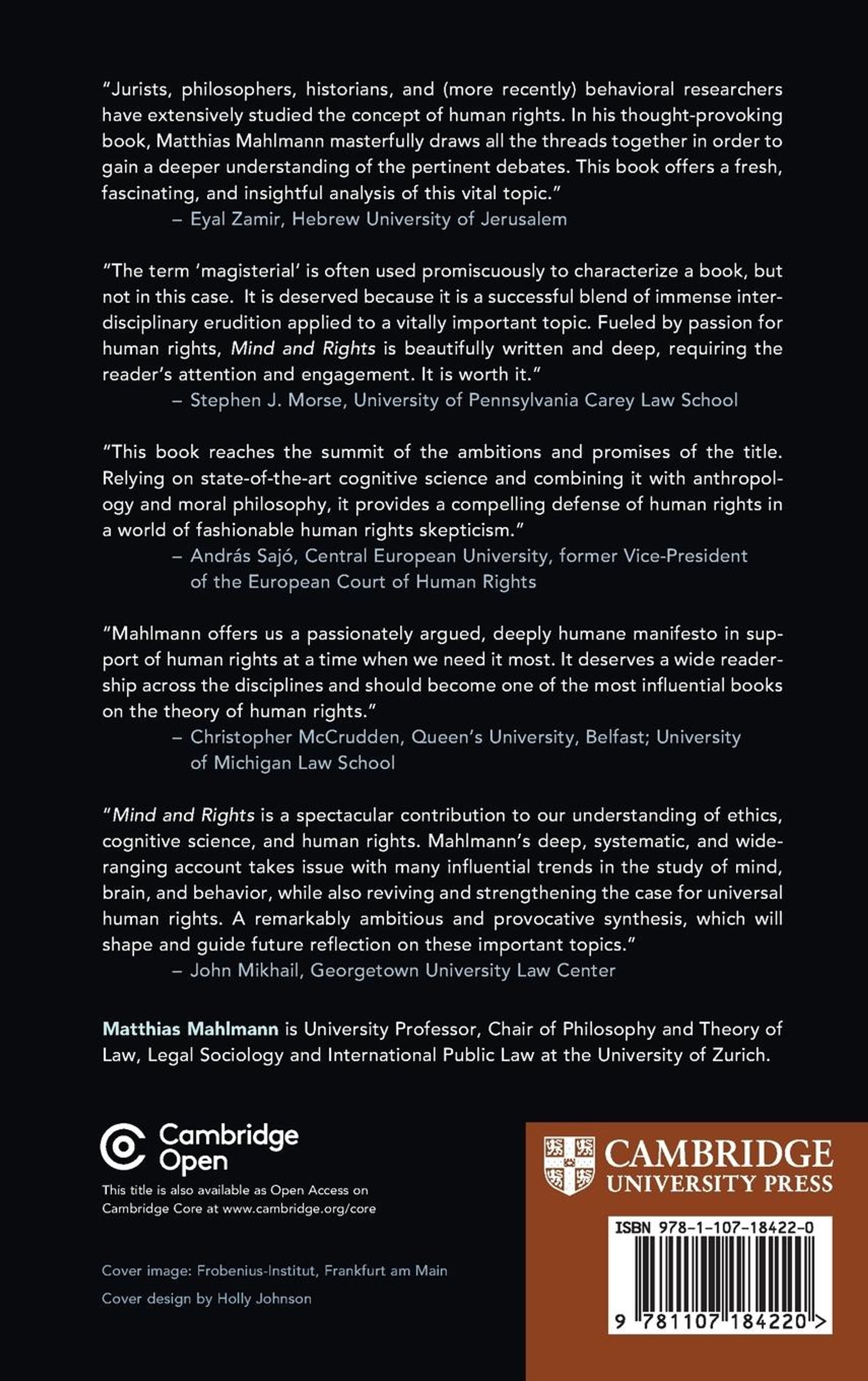 "Mind and Rights combines historical, philosophical, and legal perspectives with research from psychology and the cognitive sciences to probe the justification of human rights in ethics, politics and law. Chapters critically examine the growth of the human rights culture, its roots in history and current human rights theories. They engage with the so-called cognitive revolution and investigate the relationship between human cognition and human rights to determine how insights gained from modern theories of the mind can deepen our understanding of the foundations of human rights. Mind and Rights argues that the pursuit of the human rights idea, with its achievements and tragic failures, is key to understand what kind of beings humans are. Amidst ongoing debate on the universality and legitimacy of human rights, this book provides a uniquely comprehensive analysis of great practical and political importance for a culture of legal justice undergirded by rights. Matthias Mahlmann is University Professor, Chair of Philosophy and Theory of Law, Legal Sociology and International Public Law at the University of Zurich"--