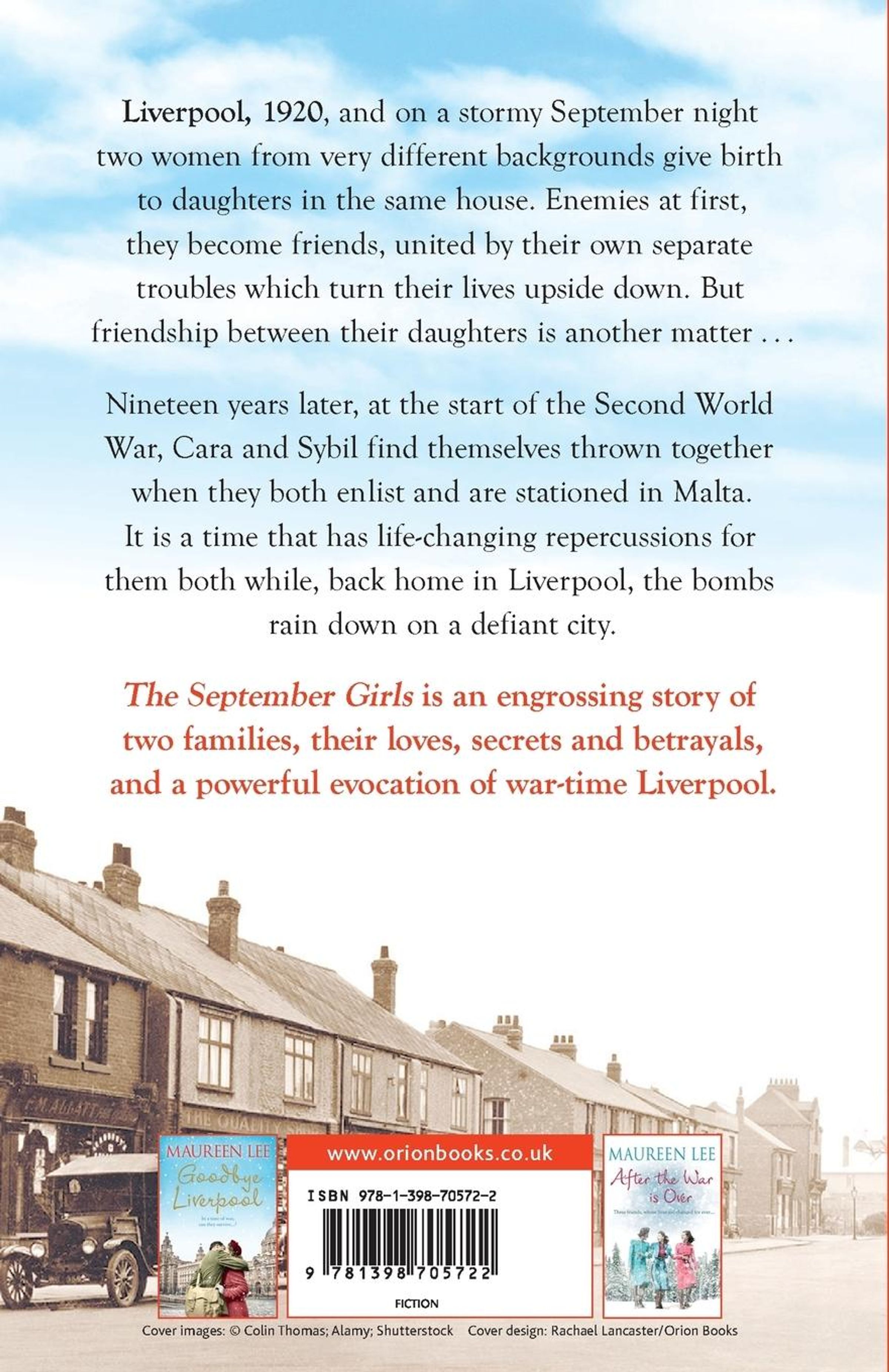 Nineteen years later, at the beginning of the Second World War, Cara and Sybil find themselves thrown together when they enlist and are both stationed in Malta. It is a time of live-changing repercussions for them both while, back home in Liverpool, the bombs rain down on a defiant city.