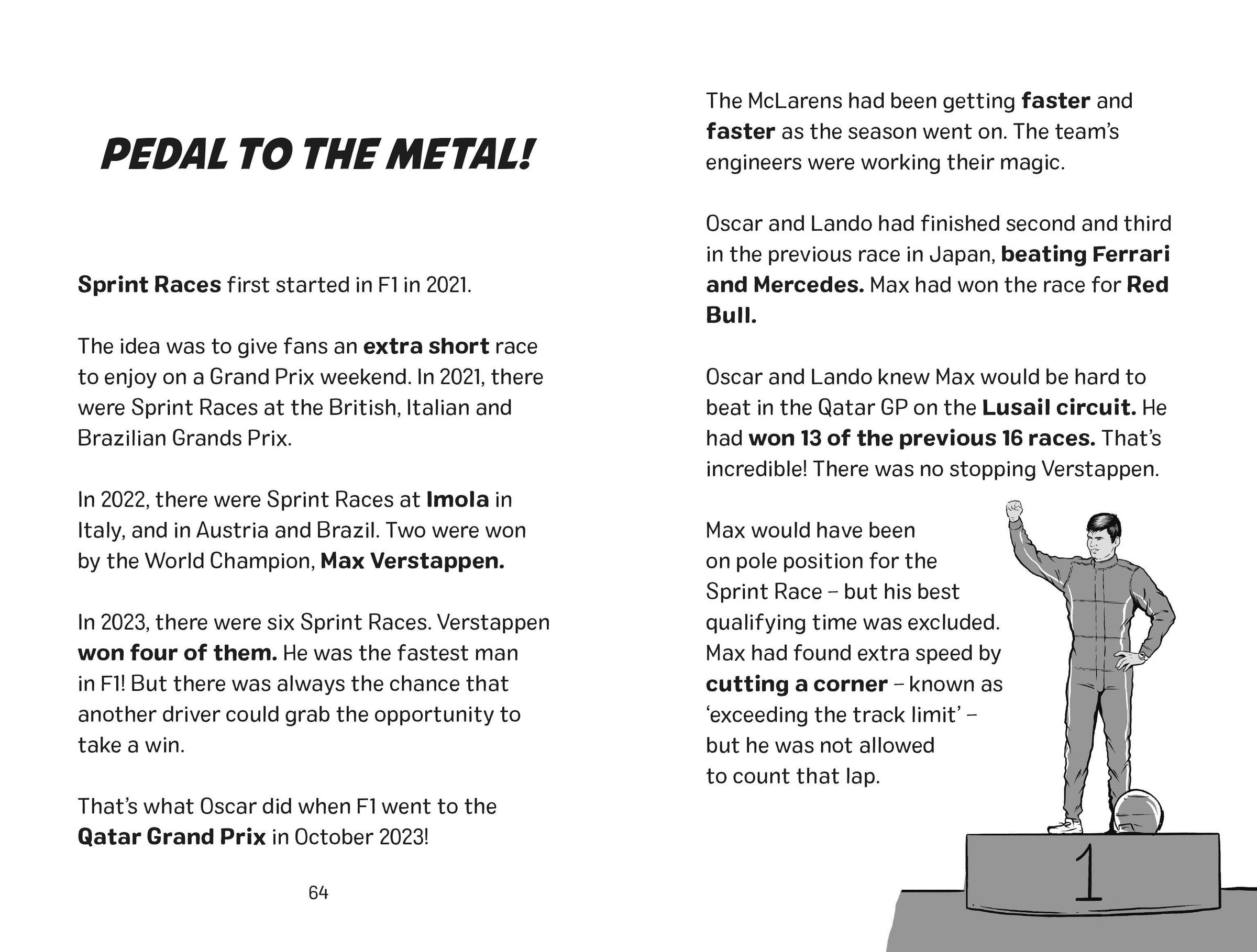 Discover how Oscar Piastri became a racing legend in this fun, illustrated, fact-filled book! Read about his wins, losses and find out about the history of Formula One.