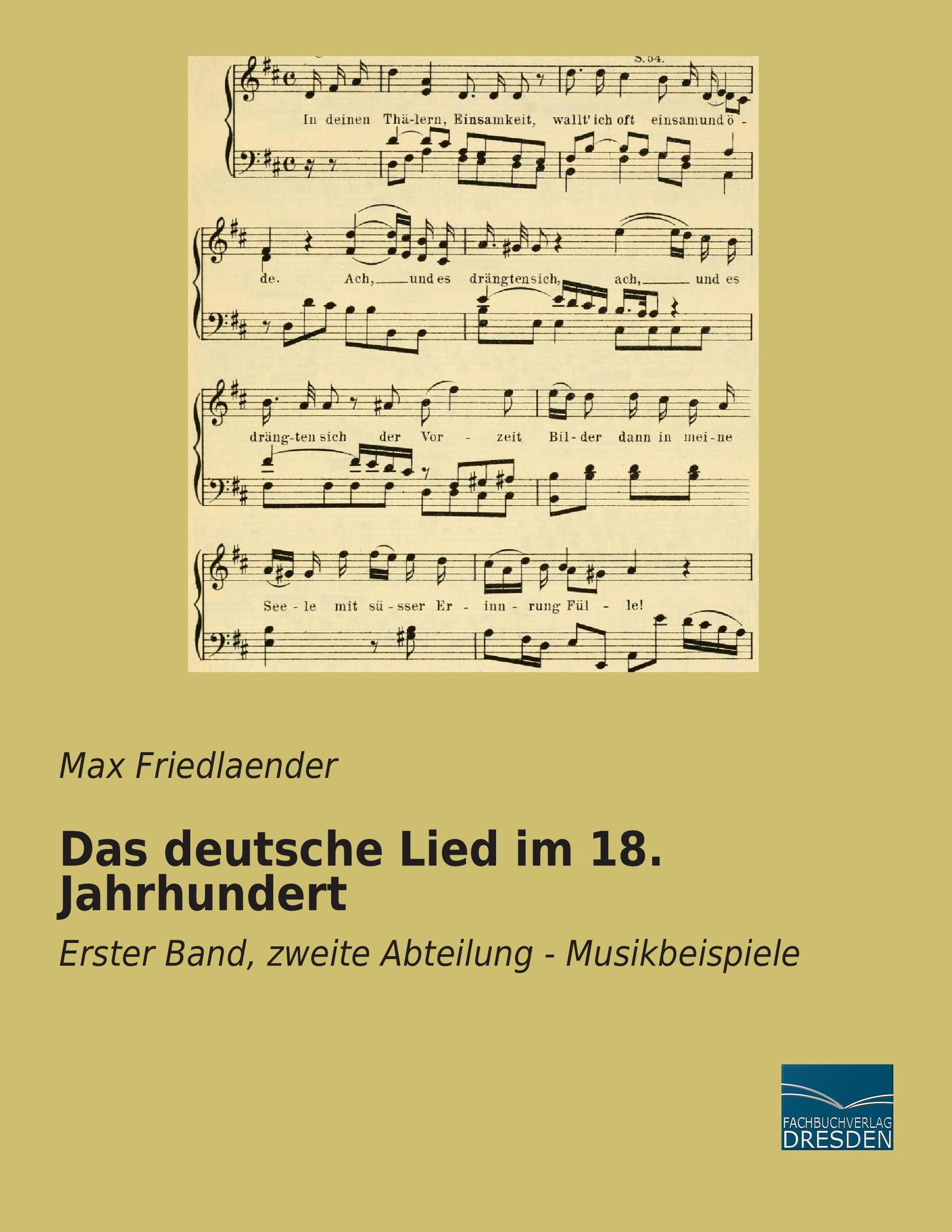 Der Autor Max Friedlaender (1852-1934) war ein deutscher Musikwissenschaftler. Eine Reihe bis dahin ungedruckter Lieder Schuberts wurden von Friedlaender erstmals veröffentlicht. Er redigierte u. a. Neuausgaben der Lieder Schuberts, Schumanns und Mendelssohns und der schottischen Lieder Beethovens. Friedlaender gab eine Chorschule heraus, arbeitete mit an Julius Stockhausens Gesangstechnik und Stimmbildung und schrieb eine größere Zahl Aufsätze zur neueren Liedkunst. Im vorliegenden Band (Erster Band, zweite Abteilung - Musikbeispiele) stellt er das deutsche Lied im 18. Jahrhundert in Musikbeispielen vor.