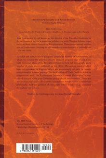 Max Horkheimer: Between Philosophy and Social Science, Buch, Buch