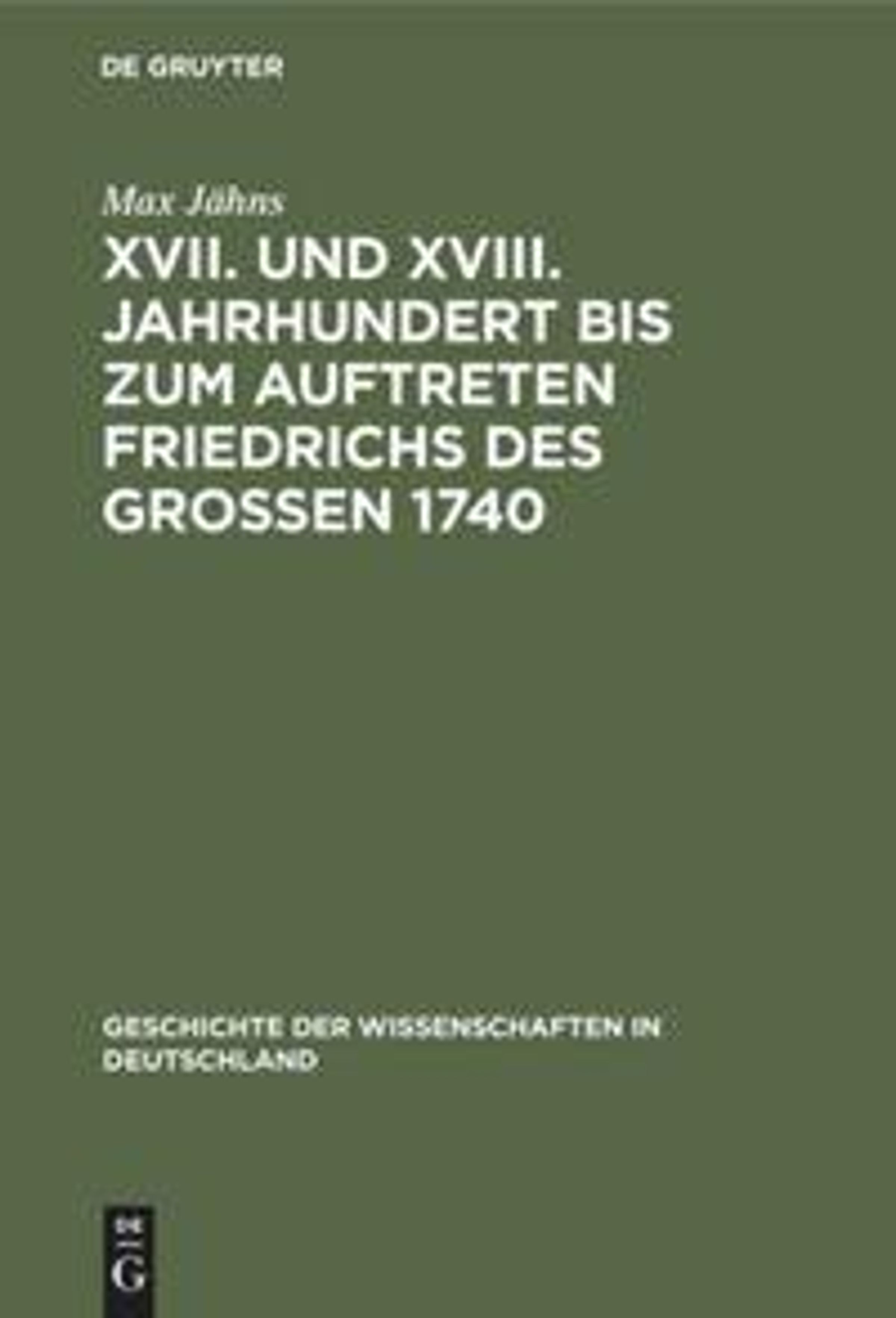 Max Jähns: XVII. und XVIII. Jahrhundert bis zum Auftreten Friedrichs des Großen 1740, Gebunden