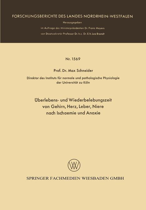 Max Schneider: Überlebens- und Wiederbelebungszeit von Gehirn, Herz, Leber, Niere nach Ischaemie und Anoxie, Kartoniert / Broschiert
