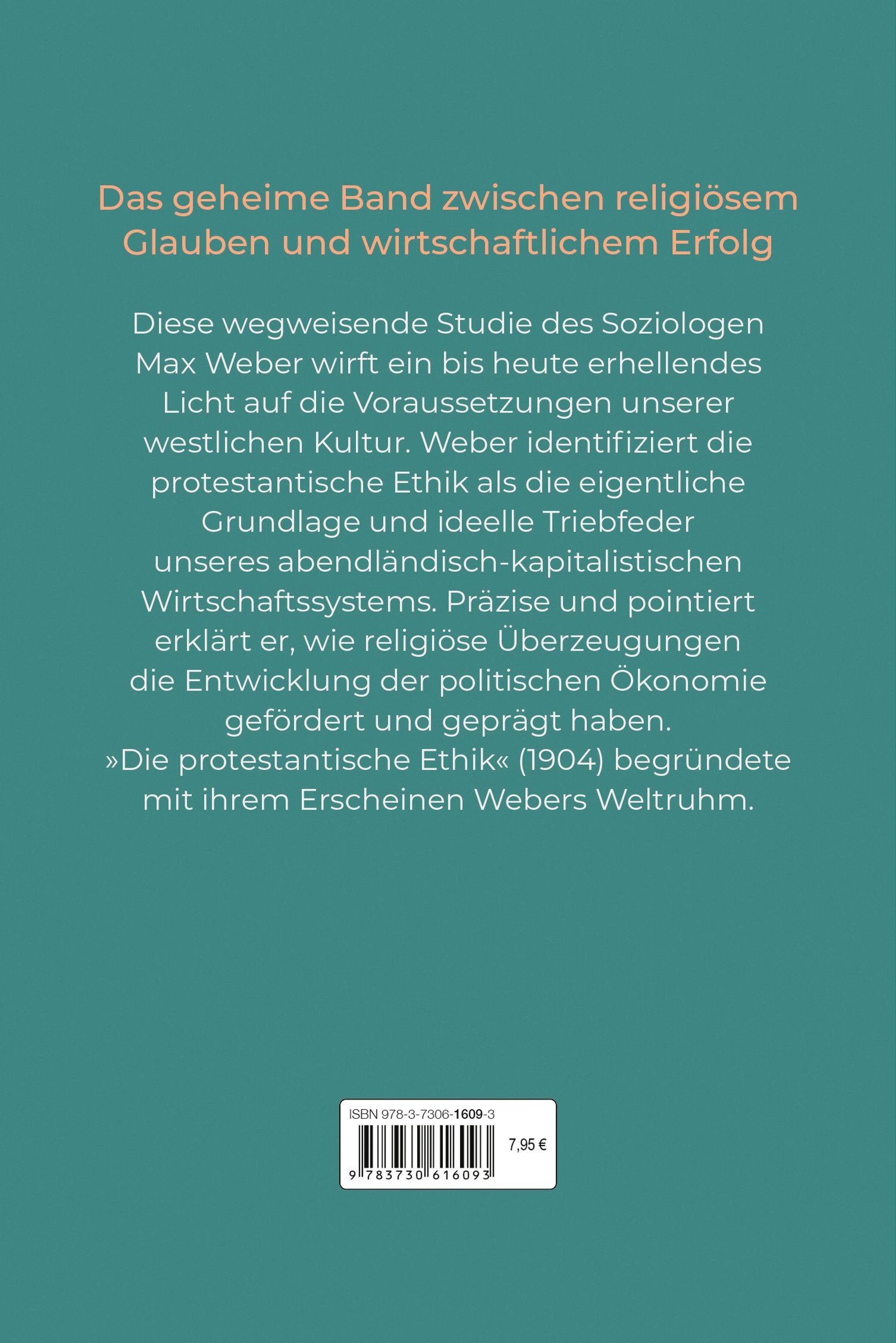 • Max Webers berühmtes Werk, Gegenposition zu Marx' "Kapital", beschreibt die protestantische Leistungsethik als Grundlage für den Kapitalismus