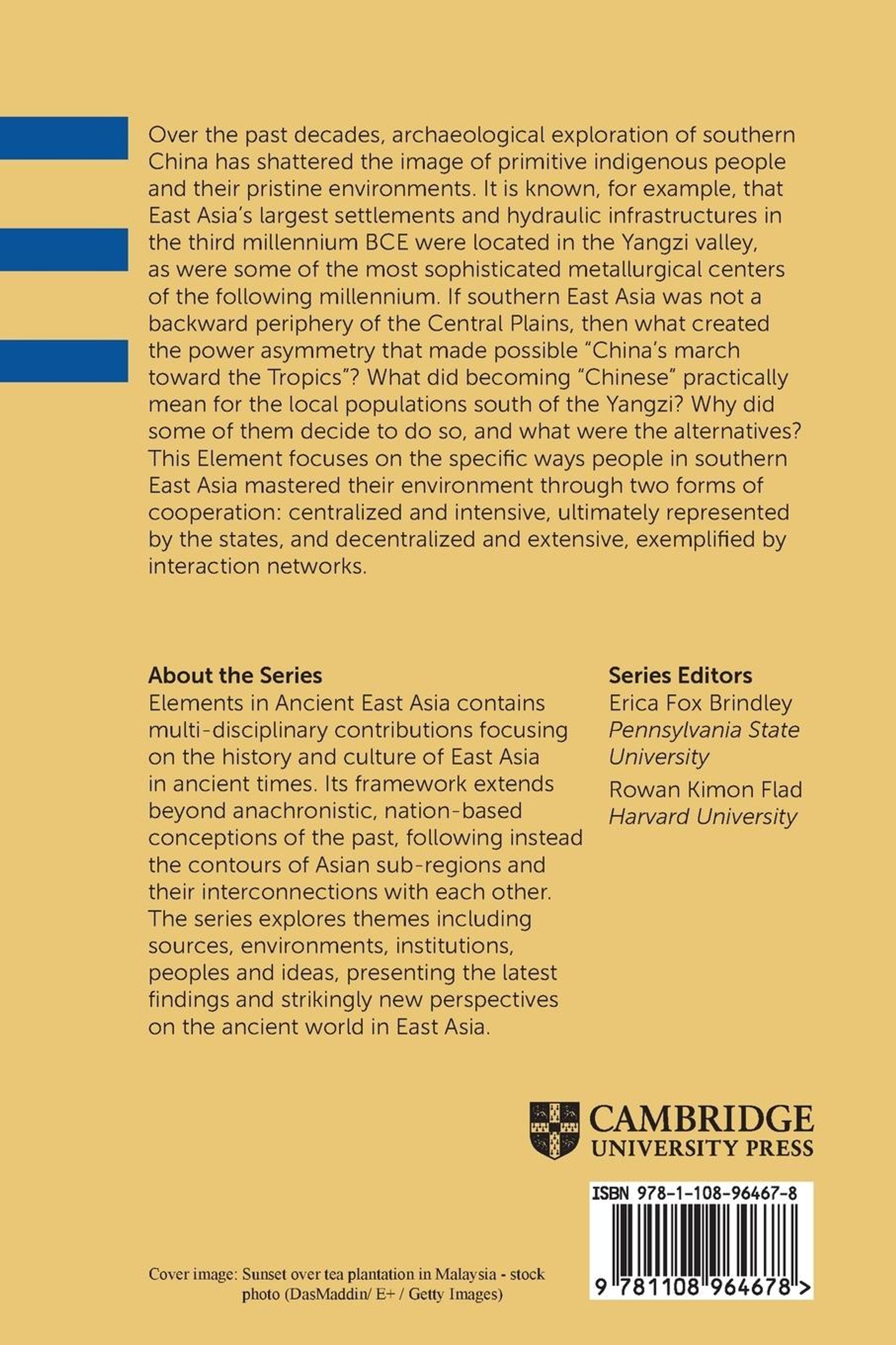 Over the past decades, archaeological exploration of southern China has shattered the image of primitive indigenous people and their pristine environments. It is known, for example, that East Asia's largest settlements and hydraulic infrastructures in the third millennium BCE were located in the Yangzi valley, as were some of the most sophisticated metallurgical centers of the following millennium. If southern East Asia was not a backward periphery of the Central Plains, then what created the power asymmetry that made possible 'China's march toward the Tropics'? What did becoming 'Chinese' practically mean for the local populations south of the Yangzi? Why did some of them decide to do so, and what were the alternatives? This Element focuses on the specific ways people in southern East Asia mastered their environment through two forms of cooperation: centralized and intensive, ultimately represented by the states, and decentralized and extensive, exemplified by interaction networks.