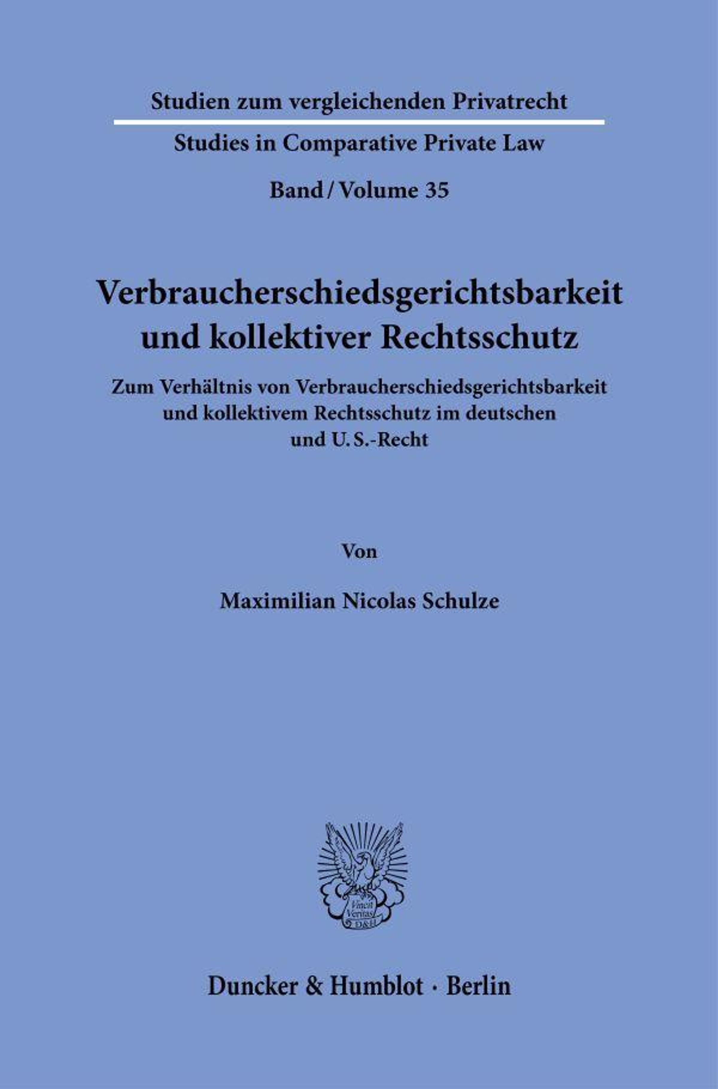 'Consumer Arbitration and Collective Redress. On the Relationship between Consumer Arbitration and Collective Redress in German and U. S. Law': The thesis examines the relationship between consumer arbitration and collective redress mechanisms in U. S. (class actions) and German law (in particular, the newly enacted action for relief under the German Consumer Rights Enforcement Act (Verbraucherrechtedurchsetzungsgesetz)). It also examines the legal framework for consumer arbitration in German and EU law and develops approaches for how the system recognized by both legal systems can be developed further.