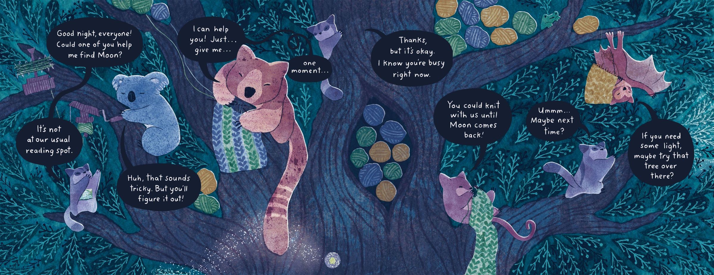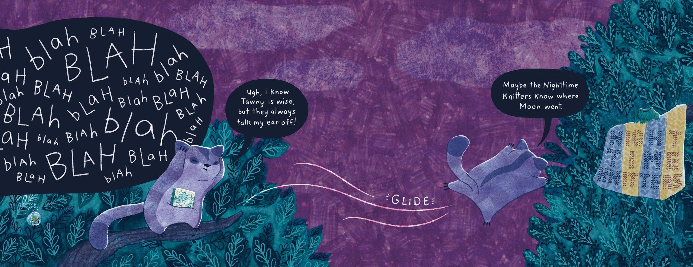 On reading nights, Sugar Glider always curls up under the moon. But tonight, Moon is nowhere to be found!