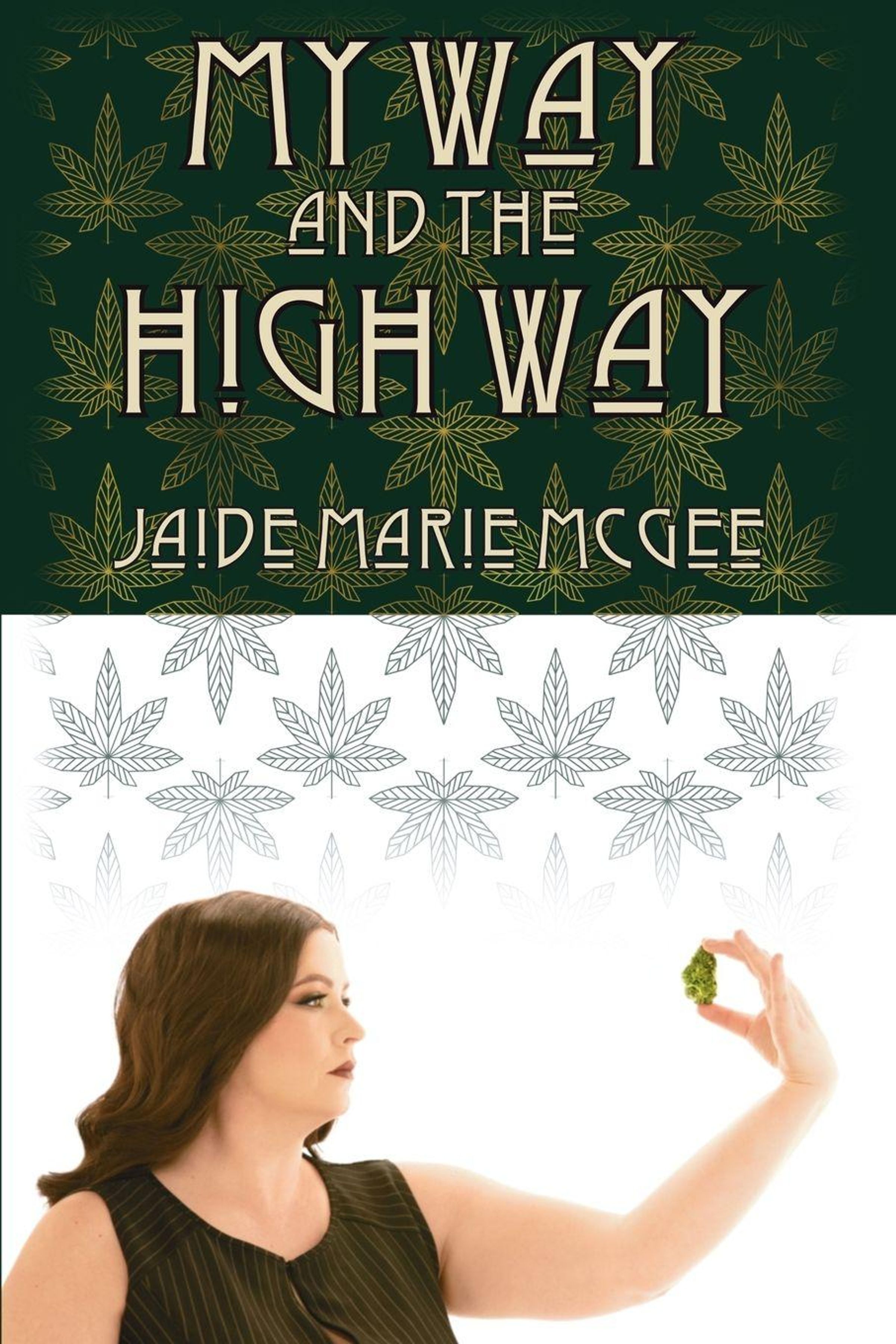 Text: "MY WAY AND THE HIGH WAY JAIDE MARIE MCGEE". Hintergrund mit grünen Blättern, Frau hält etwas Grünes., Buch