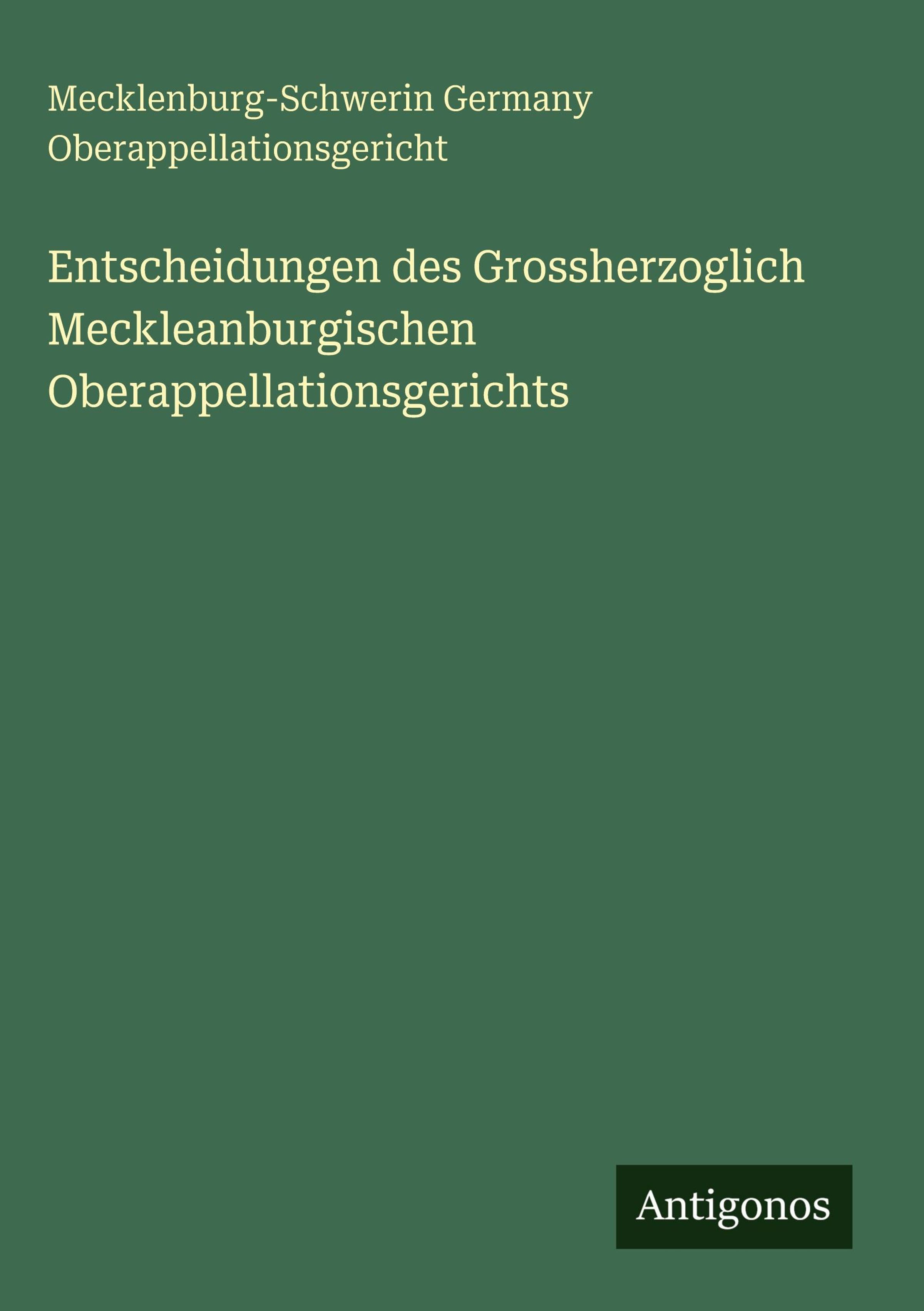 Mecklenburg-Schwerin Germany Oberappellationsgericht: Entscheidungen des Grossherzoglich Meckleanburgischen..., Gebunden