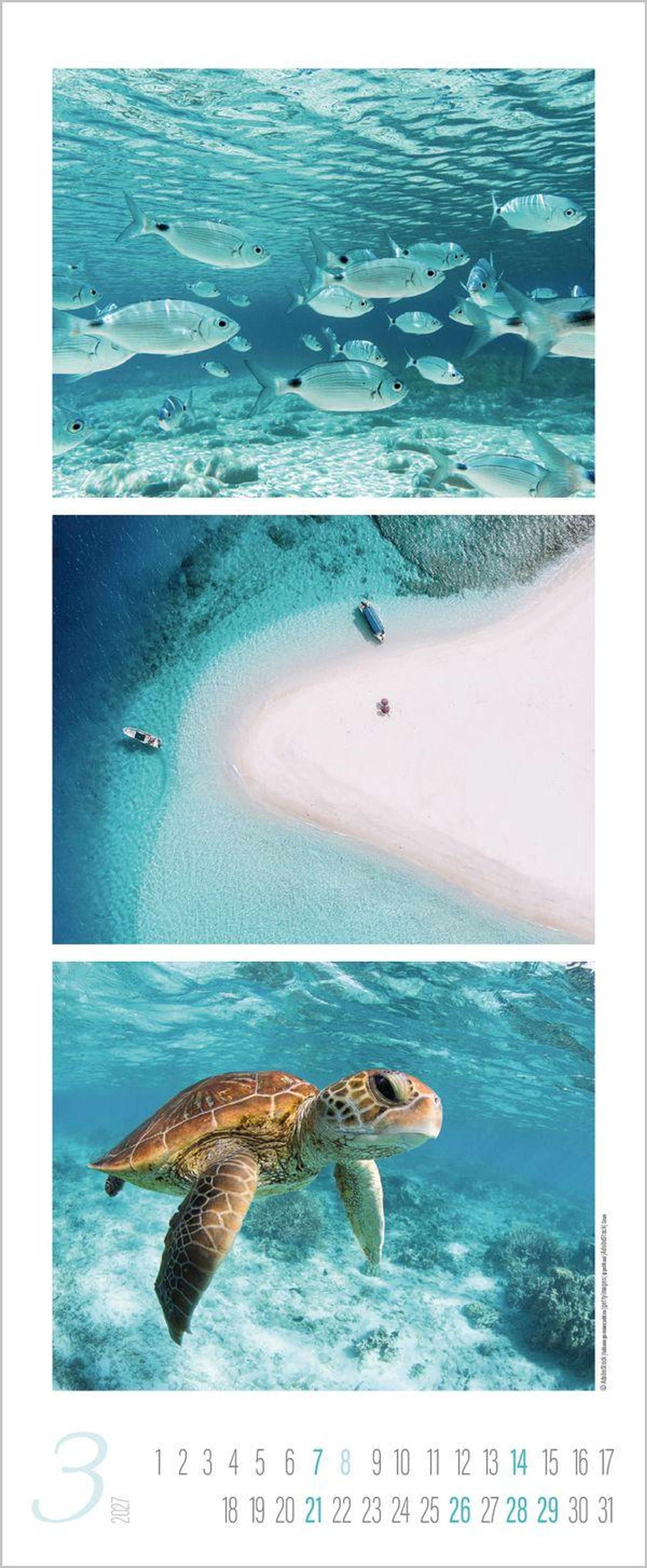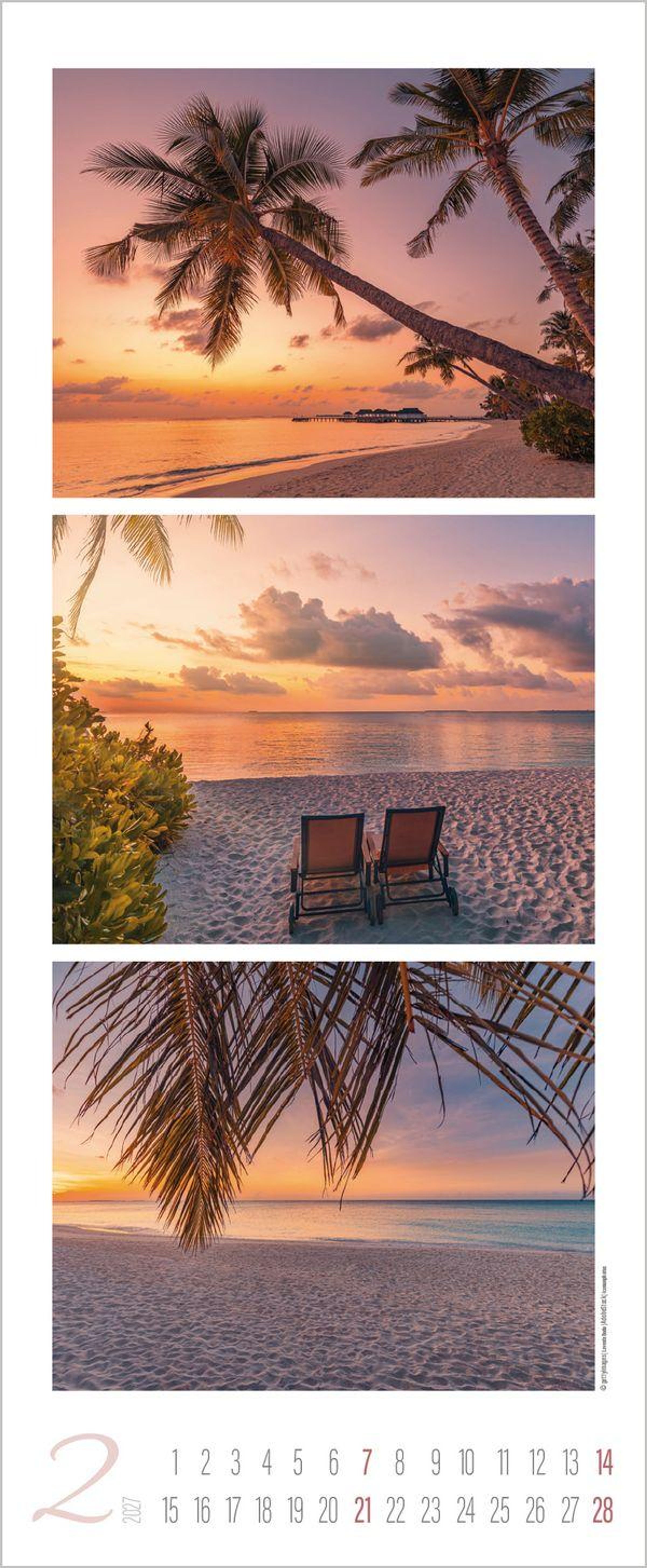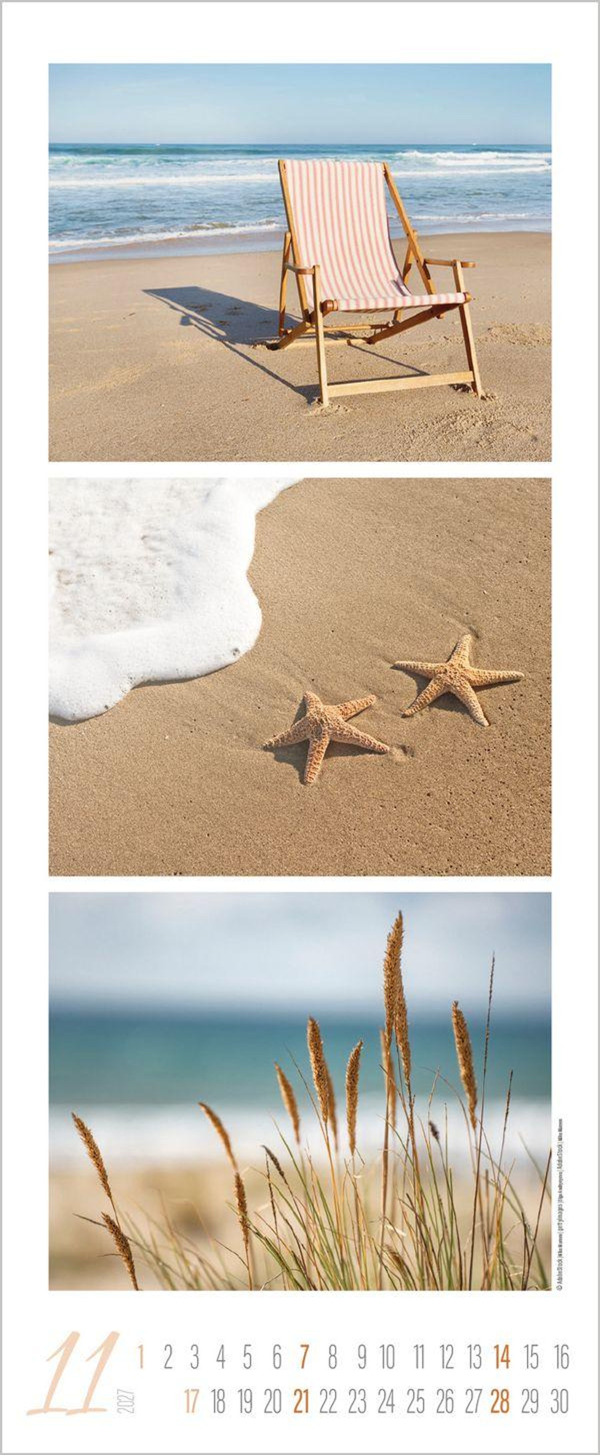 - Schmaler Wandkalender. Foto-Kunstkalender zum Thema Meer und Strand. PhotoArt Vertikal Format: 28,5x69 cm.