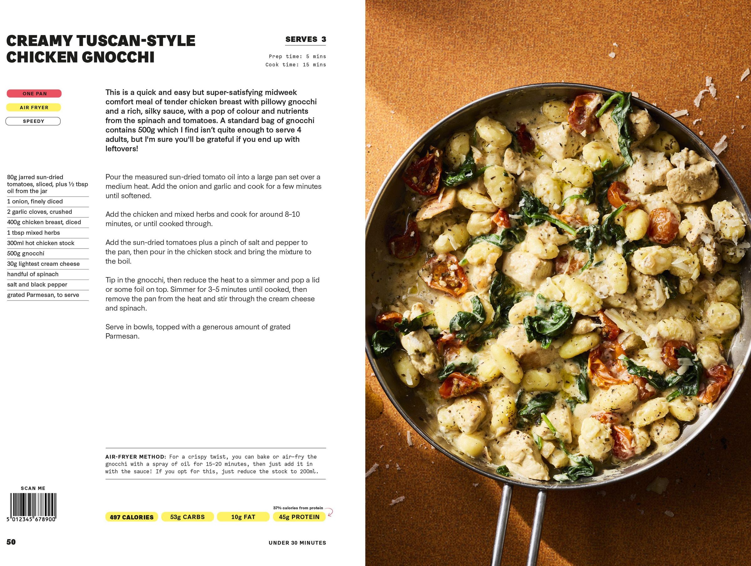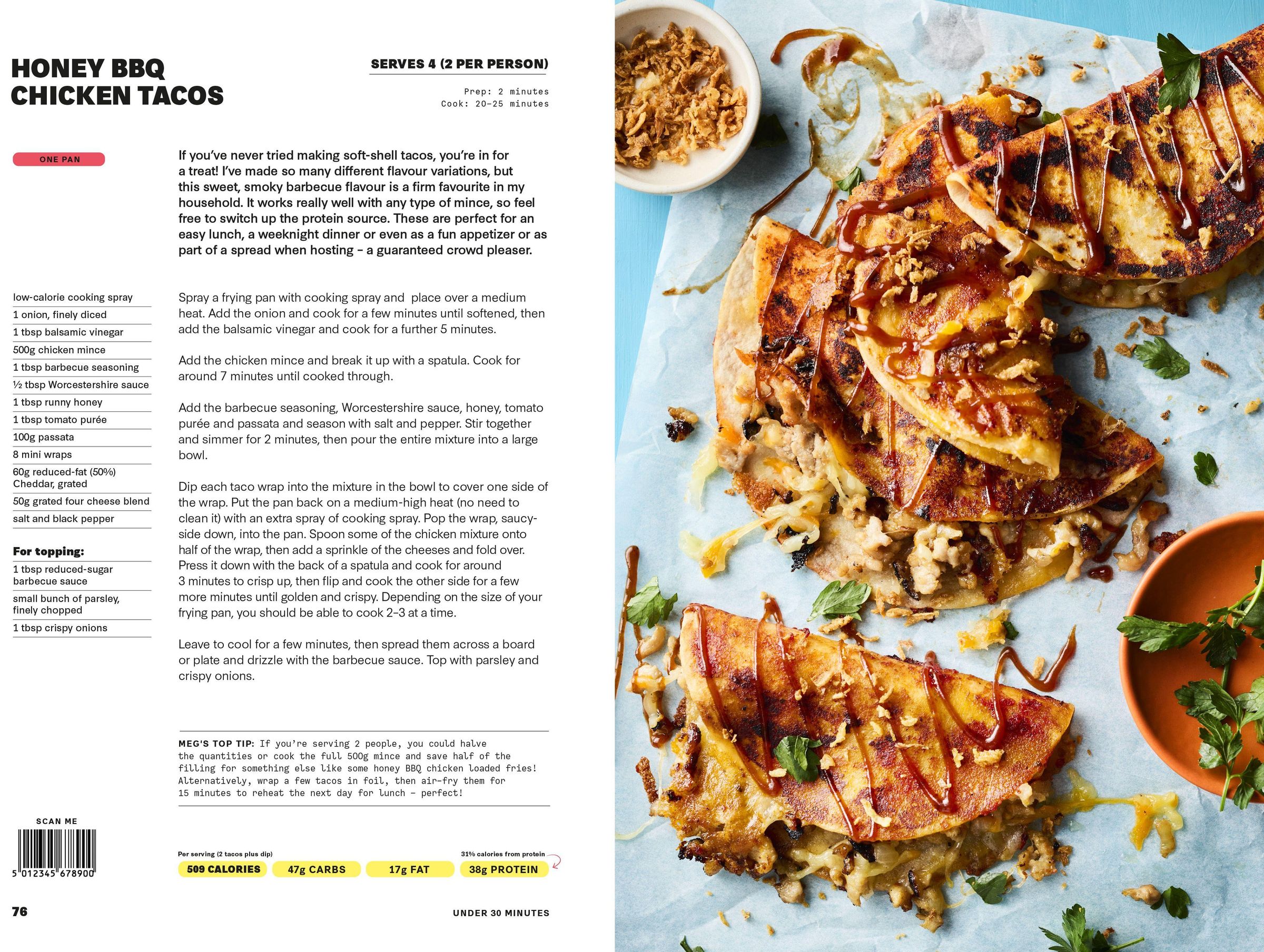 Healthy in One is packed with filling and delicious mealtime favourites you'll love. From Smash Breakfast Tacos to Gochujang Salmon Tray Bake and from Marry Me Chicken Pie to Hoi Sin Pork Noodles: this incredible food is made using only one pan, pot or tray, making it easier than ever to get your fix of fakeaways and comfort foods while still meeting your fitness and health goals.