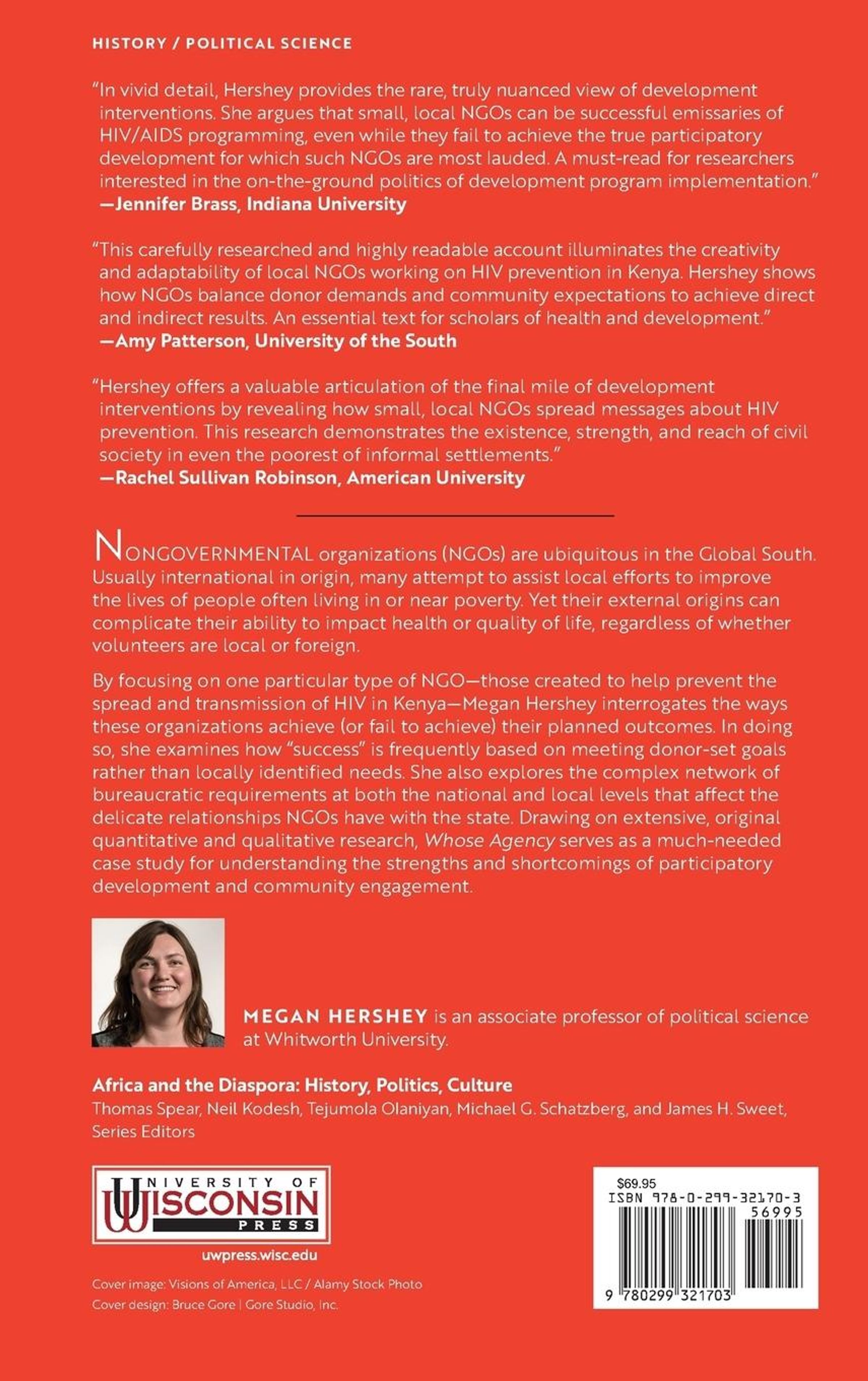 By focusing on one particular type of NGO---those organized to help prevent the spread and transmission of HIV in Kenya---Megan Hershey interrogates the ways these organizations achieve (or fail to achieve) their planned outcomes. Along the way, she examines the slippery slope that is often used to define "success" based on meeting donor-set goals versus locally identified needs. She also explores the complex network of bureaucratic requirements at both the national and local levels that affect the delicate relationships NGOs have with the state. Drawing on extensive, original quantitative and qualitative research, Whose Agency serves as a much-needed case study for understanding the strengths and shortcomings of participatory development and community engagement.