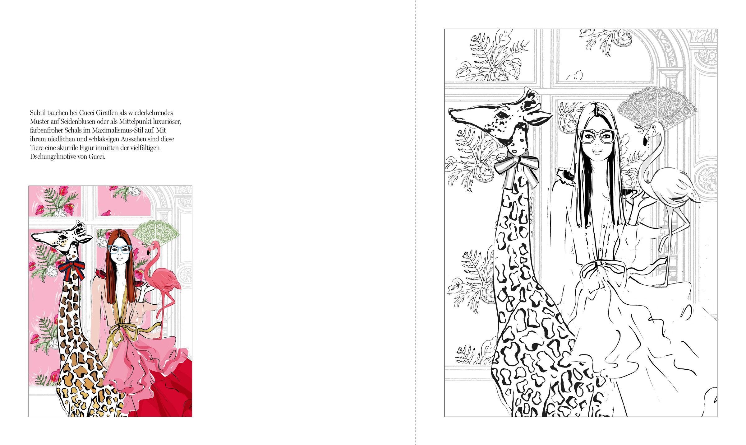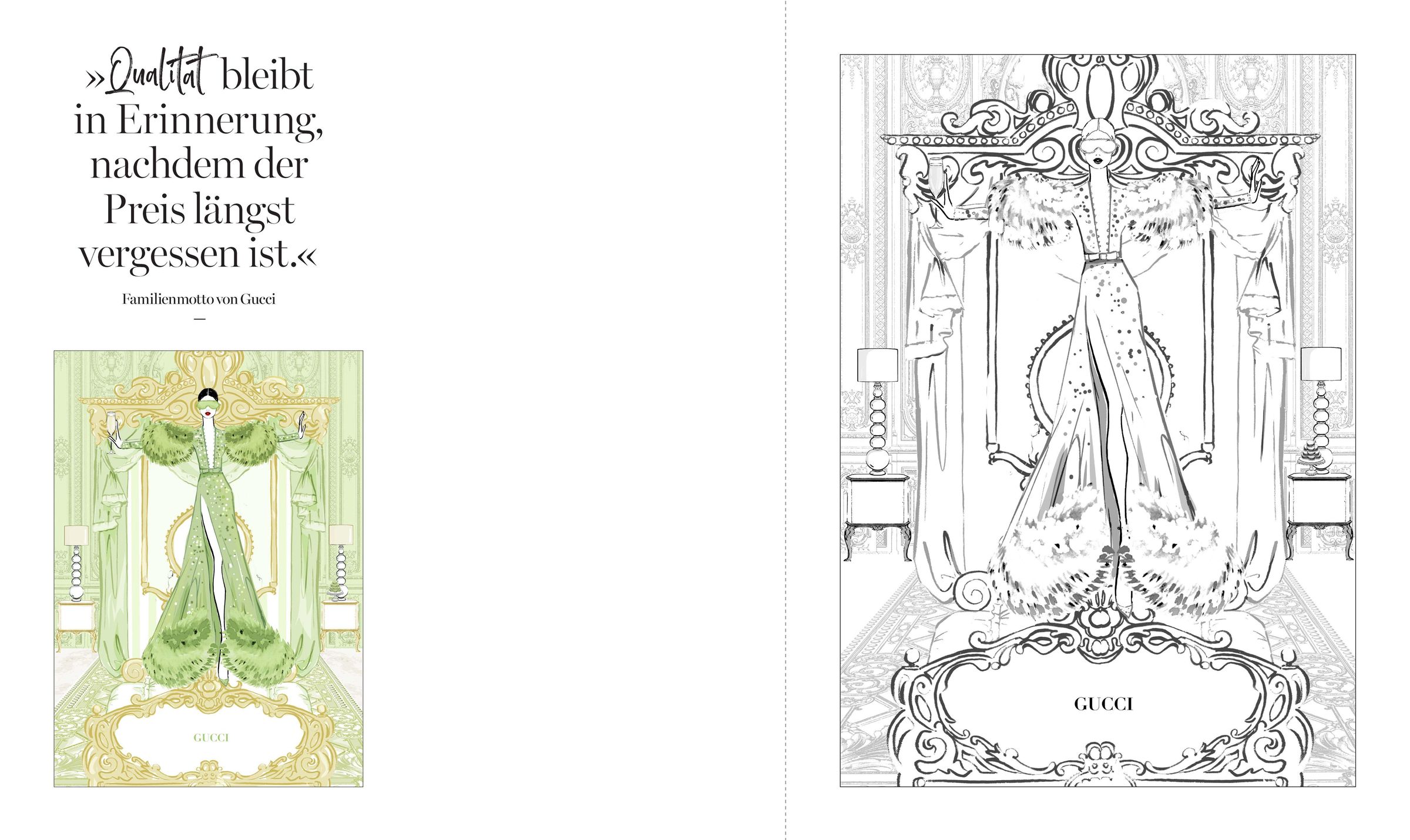 Willkommen in der glamourösen Modewelt von Megan Hess: In diesem eleganten Ausmalbuch warten 46 Vorlagen aus der Feder der kultigen Fashionillustratorin darauf, individuell gestaltet zu werden. Detailreiche Szenen mit opulenten Kleidern, schicken Accessoires und stilvollen Ensembles : klassische ChanelKostüme, raffinierte PradäOutfits, Haute Couture von Dior, Flamingos aus der GucciWelt, psychedelische PucciMuster und romantische ValentinoSilhouetten. Jedes Motiv fängt einen bestimmten Look ein und bietet dabei Raum für eigene Farbwelten, Muster und Inspirationen . Kurze Texte und Zitate liefern dazu Modewissen mit GlamFaktor. Die fertig kolorierten Seiten können anschließend einfach ausgeschnitten werden. Kleine Momente kreativer Entspannung für alle Fashionistas!