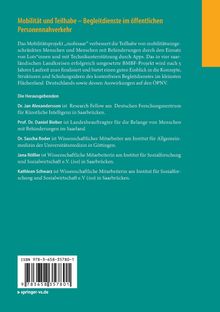 Grenzen des ÖPNV in Deutschland und im Saarland - Wofür braucht man einen Begleitdienst?.- Begleitdienste in Deutschland im Vergleich zu den Ansätzen bei "mobisaar".- Barrieren und Eingeschränkte Teilhabe.- Was ist nötig, um einen Lotsen-Begleitservice einzurichten?.- Wie werde ich Lotse? Praktische und ethische Aspekte zur Eignung, Schulung und Motivation von (ehrenamtlichen) Lotsen bei mobisaar.- Bedeutung des Ehrenamts für die Unterstützung von Menschen mit Mobilitätseinschränkungen.- Die "Koordinationszentrale" bei mobisaar: von den Aufgaben und der Umsetzung beim "Cockpit", dem Callcenter und der Lotsen-App.- Technische Anforderungen an eine nutzerzentrierte Kunden-APP.- Barrierefreies Routing und die Schwierigkeiten der Haltestellenerfassung im Saarland.- Ländliche Regionen in Deutschland - vom ÖPNV abgehängt?.- Perspektiven und Zukunftsvisionen eines Mobilitätskonzepts aus dem kleinsten Flächenland Deutschlands.