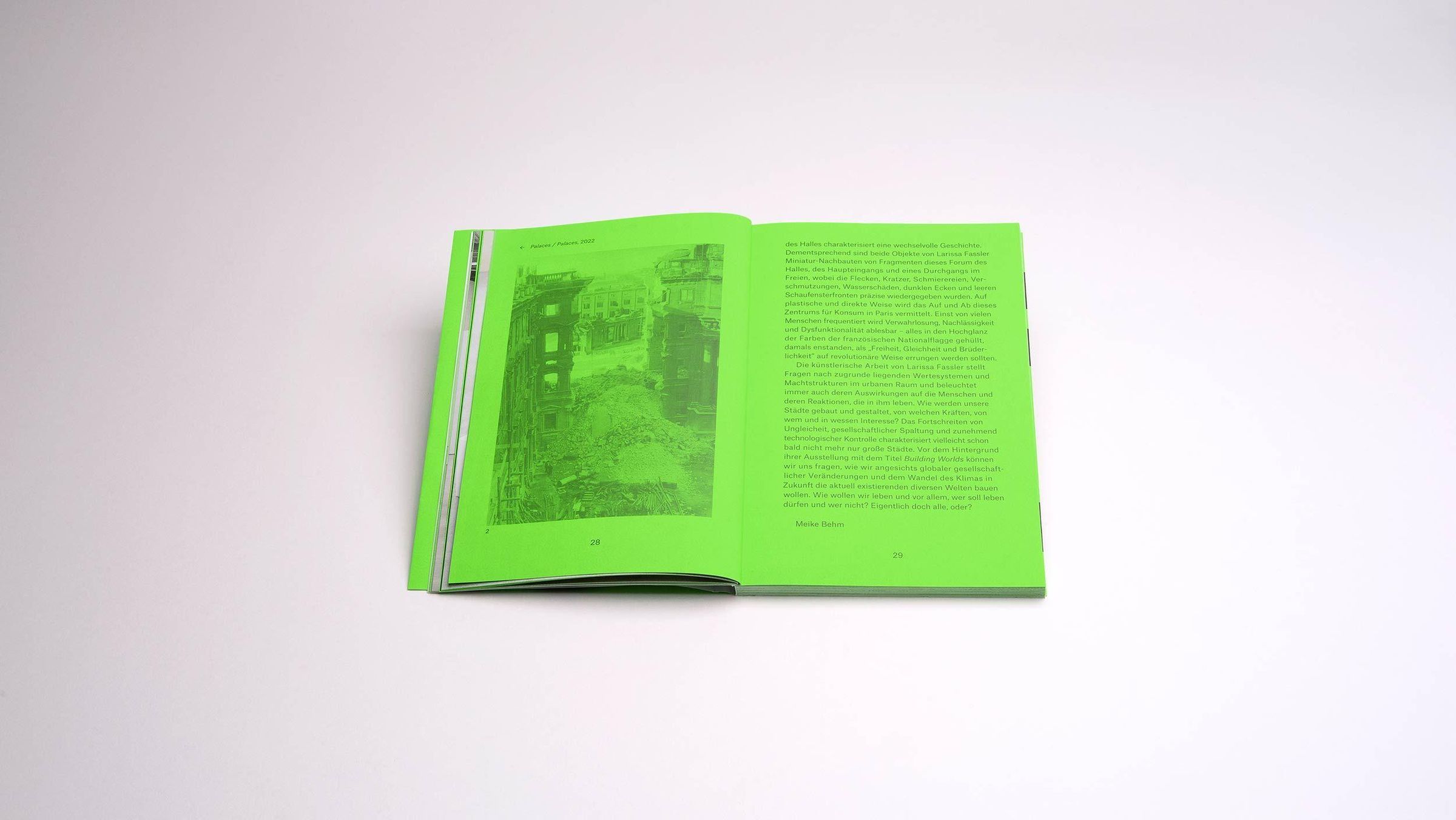 Die Zeichnungen und Skulpturen Larissa Fasslers (geb. 1975 in Canada, lebt in Berlin) dokumentieren und hinterfragen die moderne Metropole, deren öffentliche Plätze, Bahnhöfe, und Zweckbauten. Fassler recherchiert die von ihr gewählten Orte ausgiebig in Stadtarchiven und online. Sie verfolgt Trends wie wirtschaftliche Ungleichheit, Gentrifizierung, Obdachlosigkeit, oder Drogenkonsum. Diese statistischen Fakten ergänzt sie mit ihren eigenen subjektiven Erhebungsmethoden, z. B. dem wiederholten Begehen und Beobachten der Orte. Alle gesammelten Informationen finden Eingang in Fasslers komplexe kartografische Zeichnungen und Skulpturen, welche die sozioökonomischen und geopolitischen Herausforderungen unserer Zeit widerspiegeln. Dieses Buch begleitet Fasslers Ausstellung im Kunstverein Lingen.