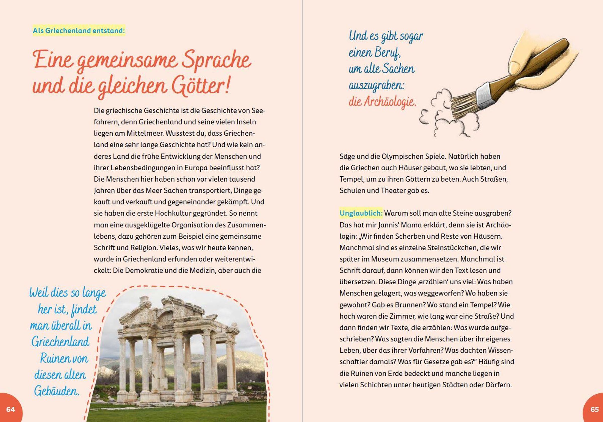 Griechenland ist Meer und Strand, Hitze und Calamari. Aber es ist noch so viel mehr. Von Kim und Jannis erfahren Kinder alles Wissenswerte über berühmte alte Griechen, die griechischen Götter und Mönche, die wechselvolle Geschichte und was sich die anderen Völker von den Griechen abgeguckt haben. Natürlich mit viel Spaß und genug Platz, damit sich kleine Künstler: innen selbst im Buch verewigen können. Auf geht's ins Land der leckeren Kuluri, lärmenden Zikaden und ehrwürdigen Denker!
