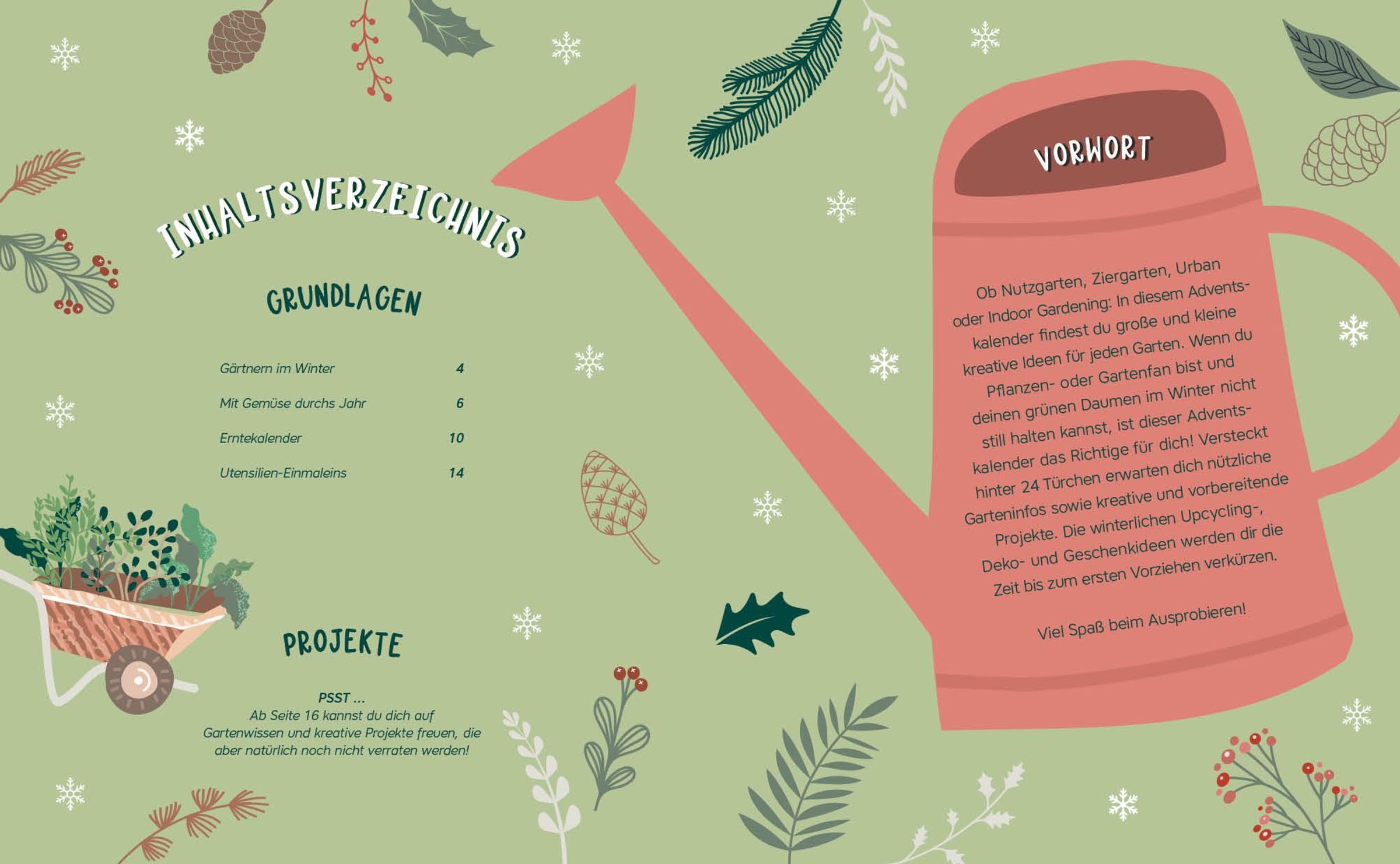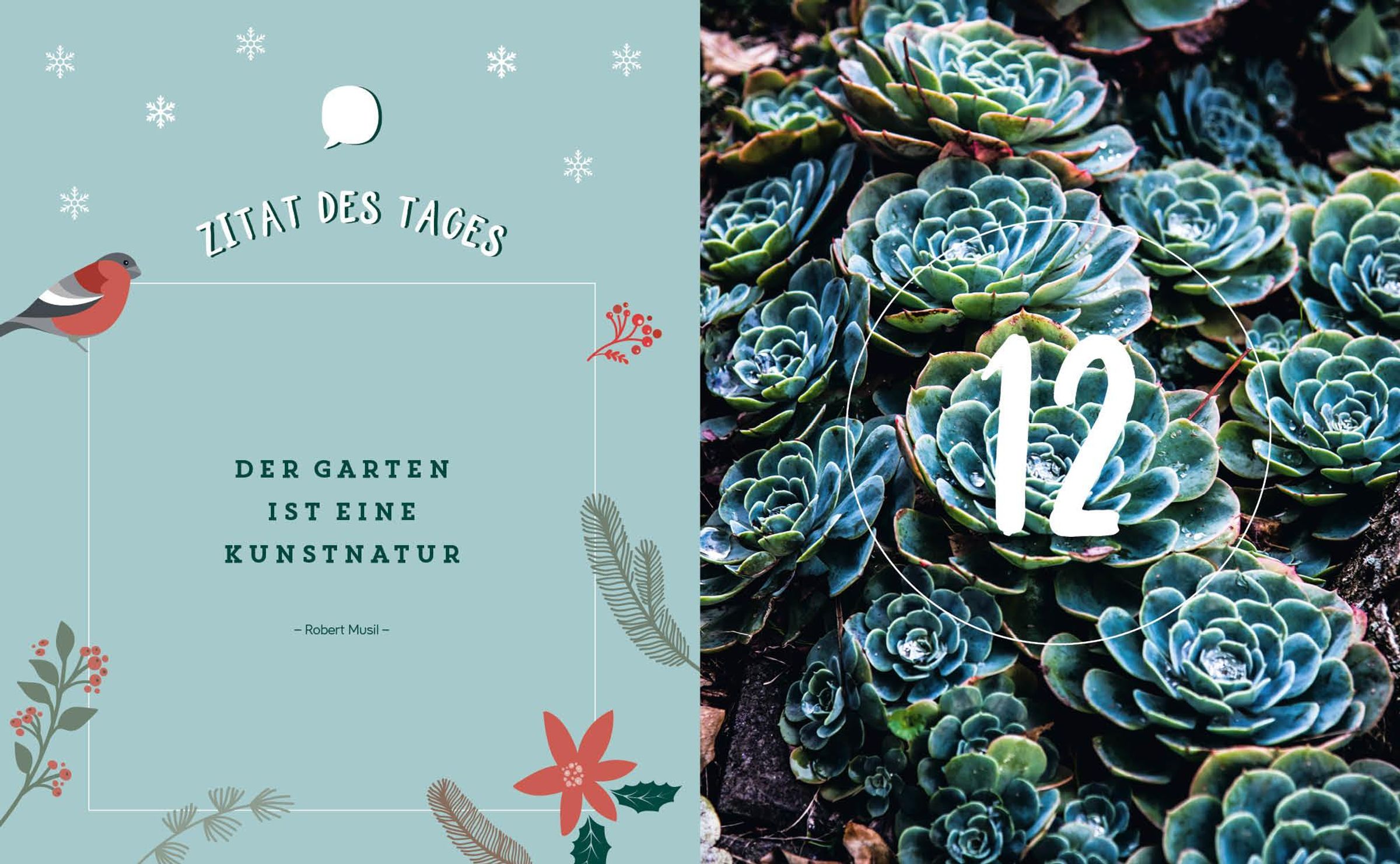 Freu dich auf eine Adventszeit voller Gartenprojekte ! So muss dein grüner Daumen keine Winterpause einlegen. Versteckt hinter 24 Türchen erwarten dich kreative und nützliche Projekte für deinen (Zimmer-)Garten . Von Zimmerpflanzen-Projekten über Naturkosmetik mit Kräutern bis hin zu dekorativen Objekten hält der Adventskalender winterliche Upcycling-, Deko- und Geschenkideen bereit, die dir die Zeit bis zum ersten Vorziehen verkürzen.