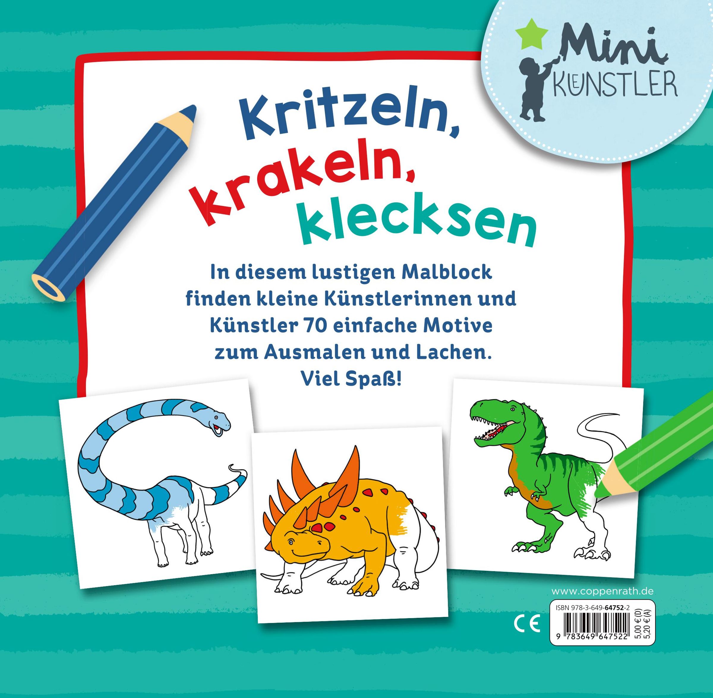 In diesem Malblock finden kleine Künstlerinnen und Künstler 70 starke Dinosaurier-Motive zum Ausmalen und Lachen.