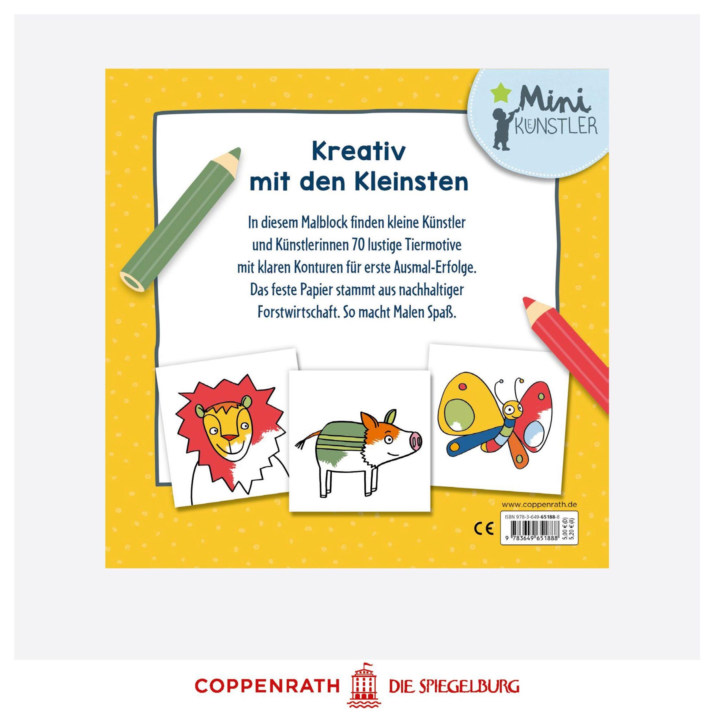 Mini-Künstler ist eine Marke von dem renommierten Spielwaren-Hersteller Coppenrath & Die Spiegelburg. Die Produkte stehen für einen hohen Qualitätsstandard sowie Spiel- und Kreativitätswert . In der Reihe "Mini-Künstler" entdecken kleine Künstler erste bunte Mal- und Bastelabenteuer. Die abwechslungsreichen Bastelbücher, Bastelblöcke, und -Sets schulen von Beginn an die feinmotorischen Fähigkeiten und helfen Kleinkindern dabei, erste kreative Erfolge zu feiern.