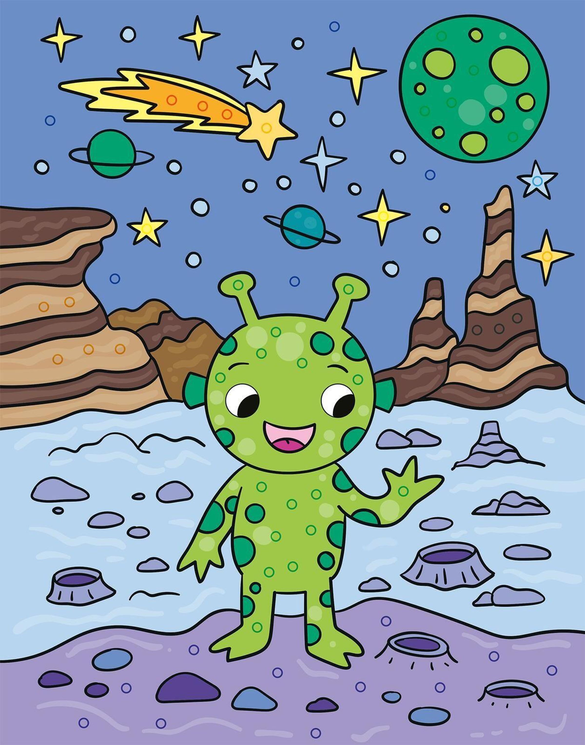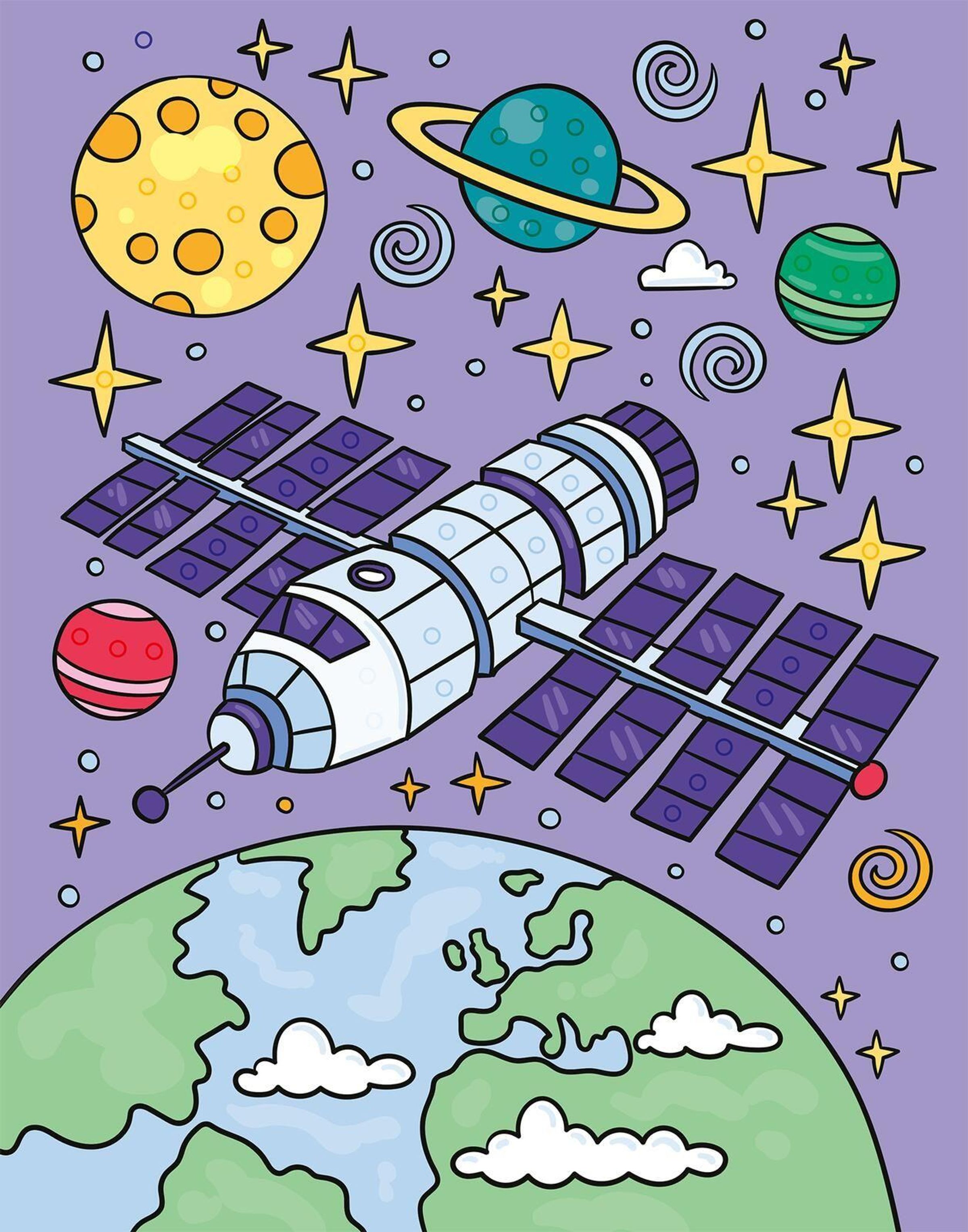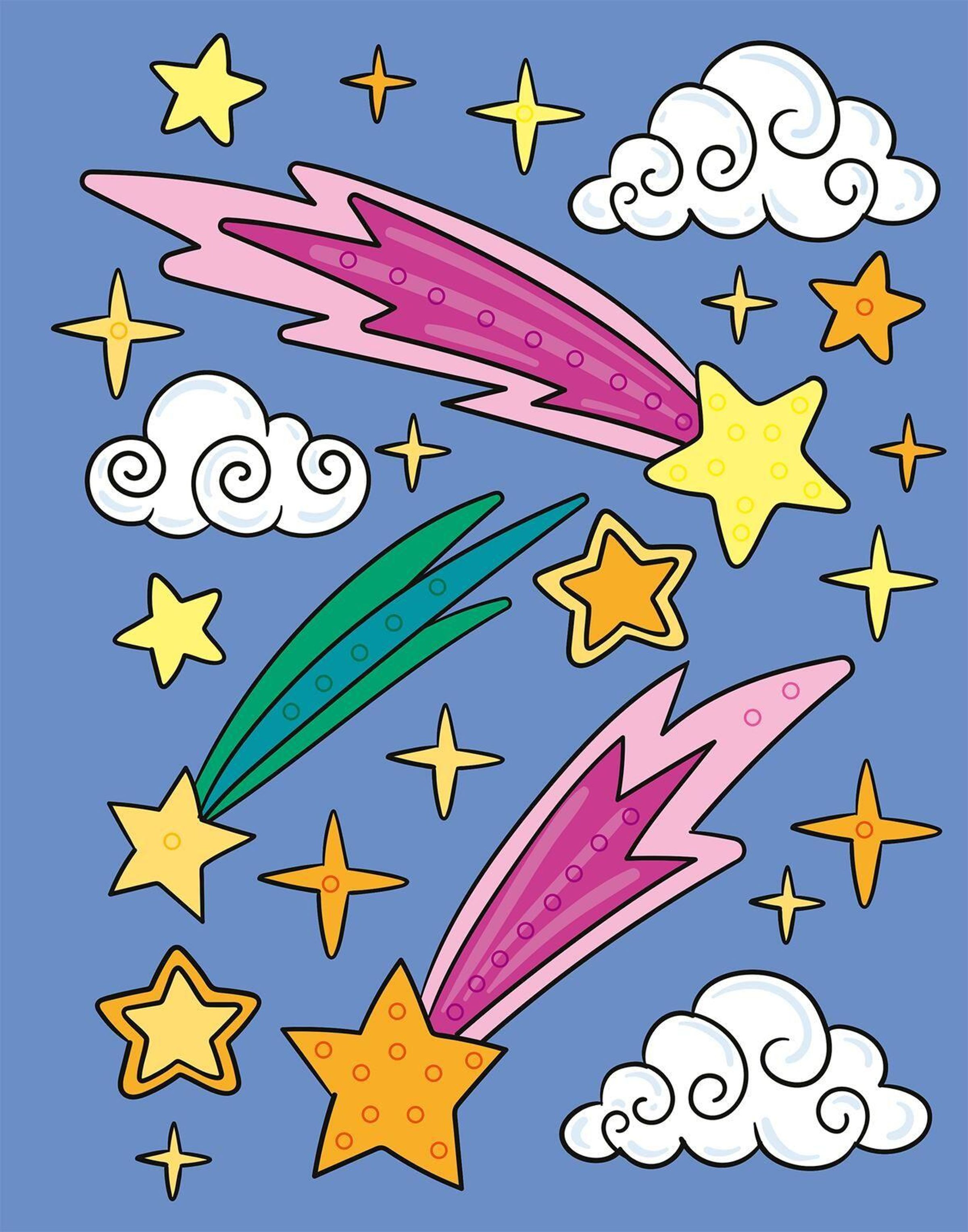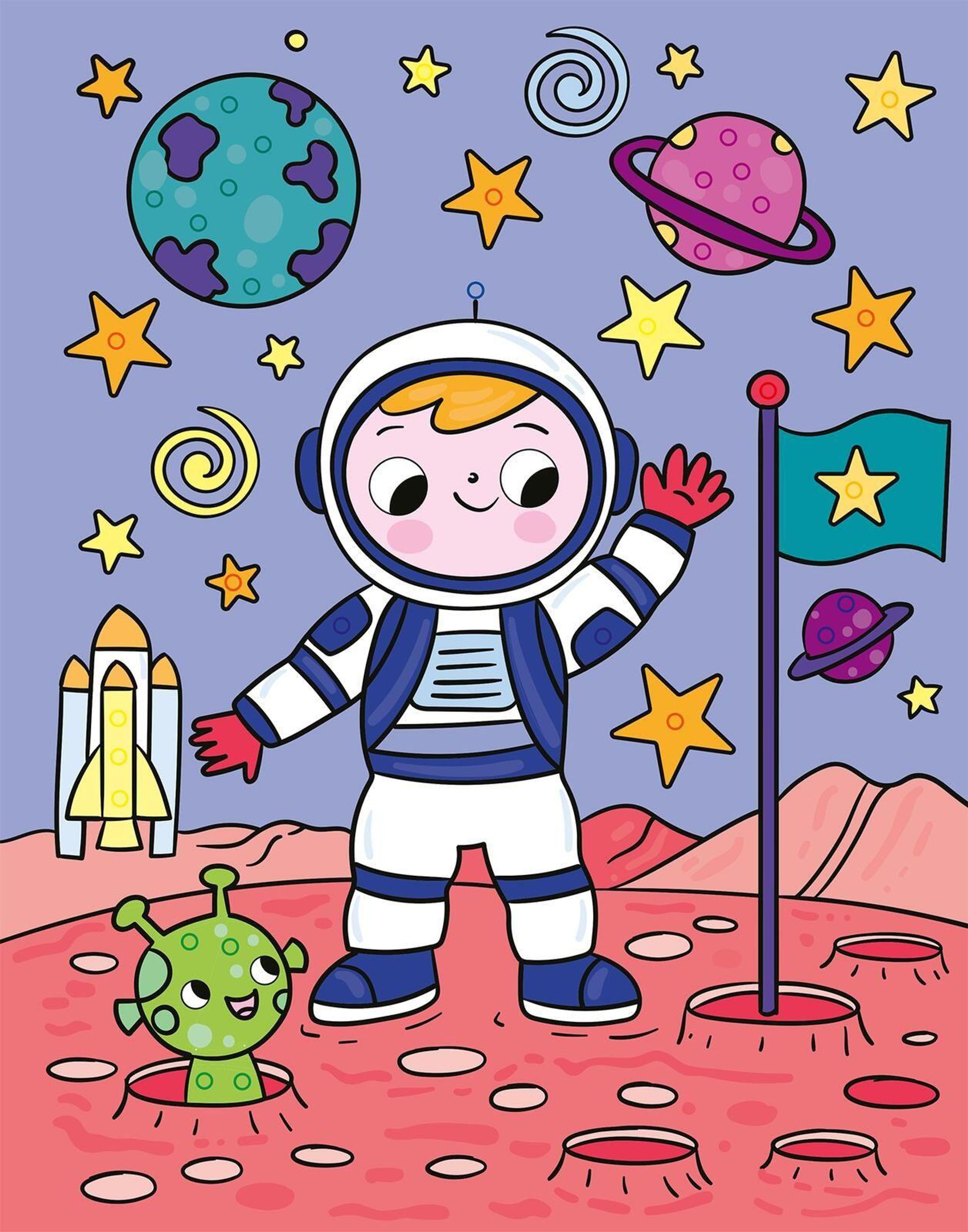 "Mein Diamant-Stickerheft Weltall." Zwei Astronautenkinder, Sterne, bunte Sticker, lila Mondlandschaft, eine Flagge mit Glitzersteinen., Buch
