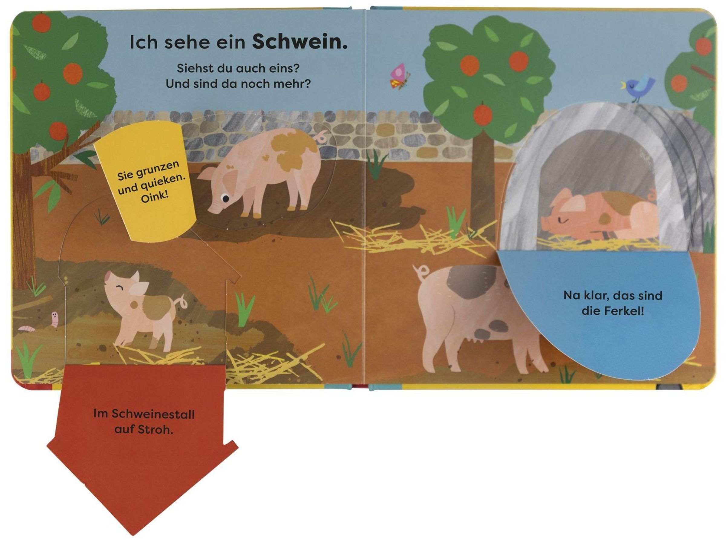 Was hat das Huhn da ins Stroh gelegt? Ob Schafe, Schweine oder Pferde: Kinder begeistern sich für alle Tiere, die ihnen begegnen. In diesem interaktiven Kinderbuch lernen Kleinkinder ab 18 Monaten die Tiere auf dem Bauernhof kennen. Drei stabile Klappen auf jeder Seite bieten eine tolle Beschäftigung für Kleinkinder und eignen sich perfekt zum Feinmotorik üben . Ein lustiger Text mit Fragen zum Mitmachen vermittelt altersgerechtes Naturwissen . Mit seinen modernen Illustrationen ist das kunterbunte Pappbilderbuch ein tolles Geschenk zum 1. Geburtstag , das jedes Kleinkind begeistern wird!