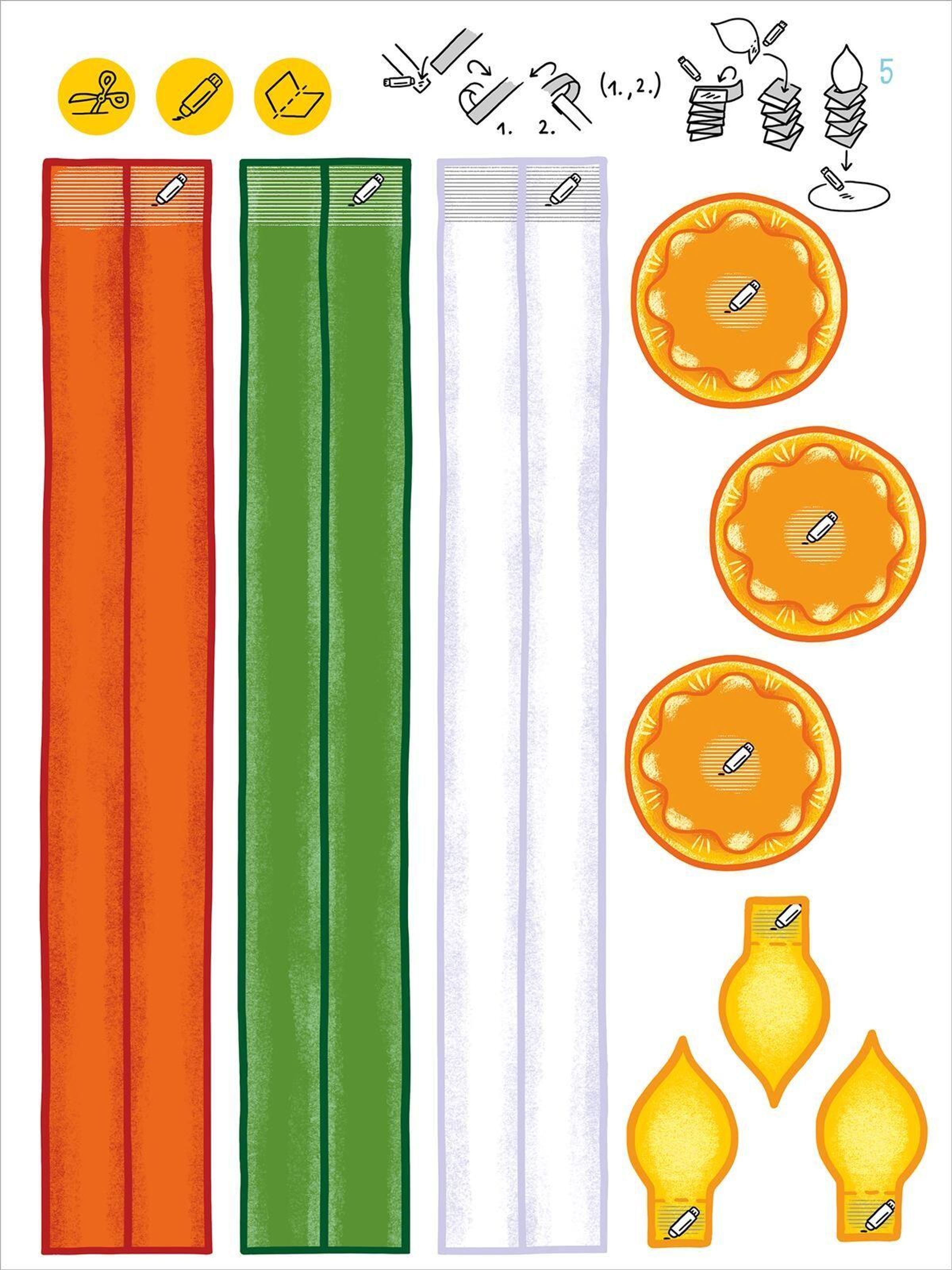 - Basteln mit Stickern: Die Bastelprojekte können mit zahlreichen bunten Stickern ergänzt werden