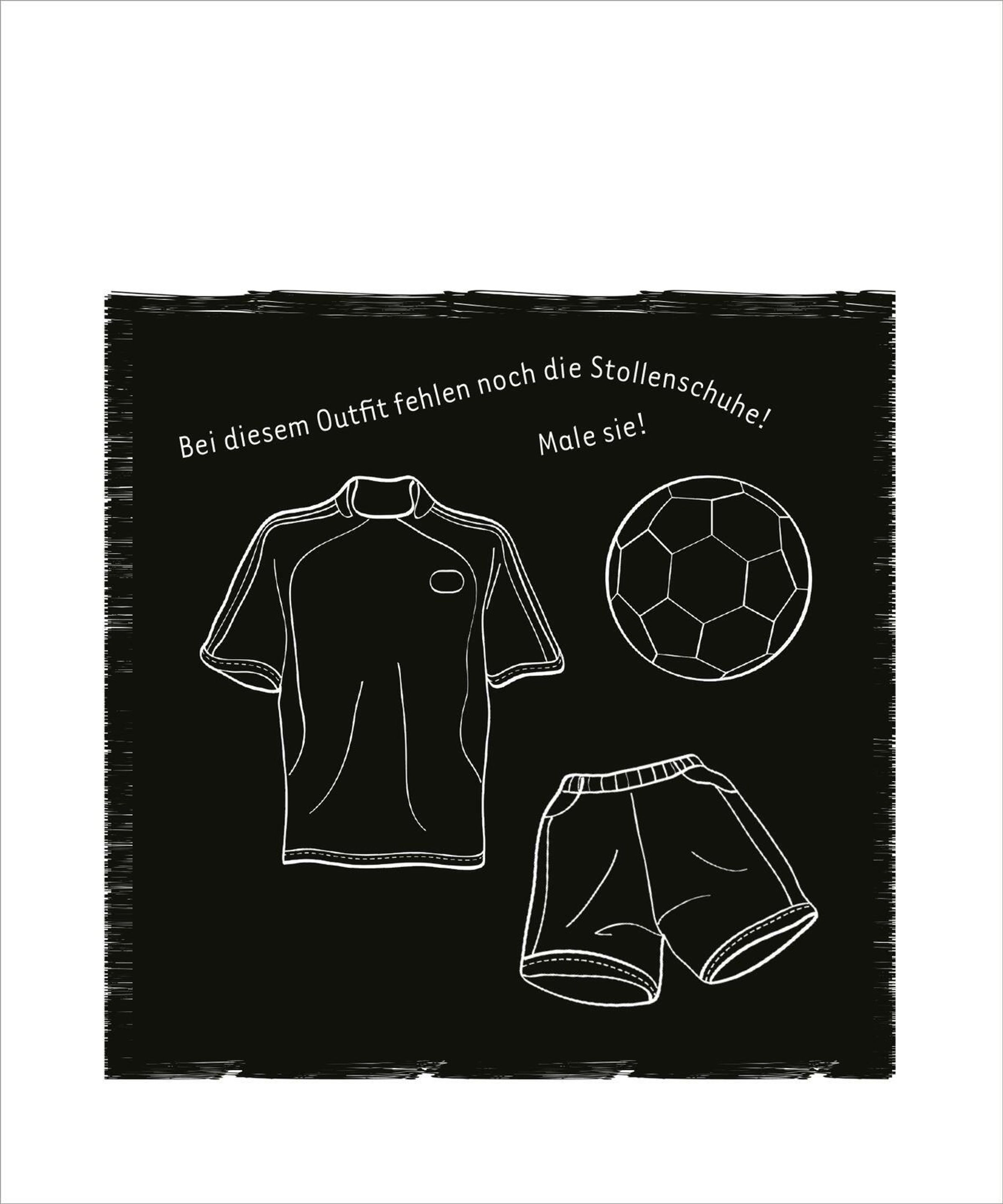 Hier warten 18 Kratzseiten darauf, von dir freigekratzt zu werden. Zu jeder Seite gibt es tolle Anregungen zum Zeichnen, die deine Kreativität herausfordern: Entwerfe dein Lieblingstrikot oder ein Vereinslogo. Kratzel dir einen schönen Pokal oder skizziere deine Angriffstaktik.
