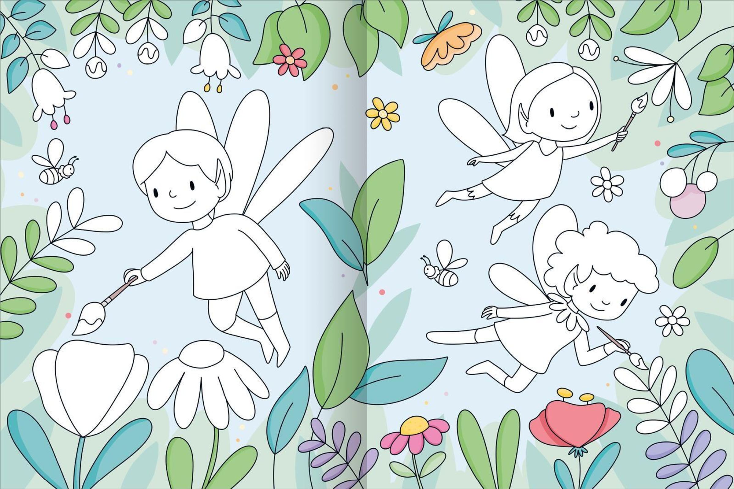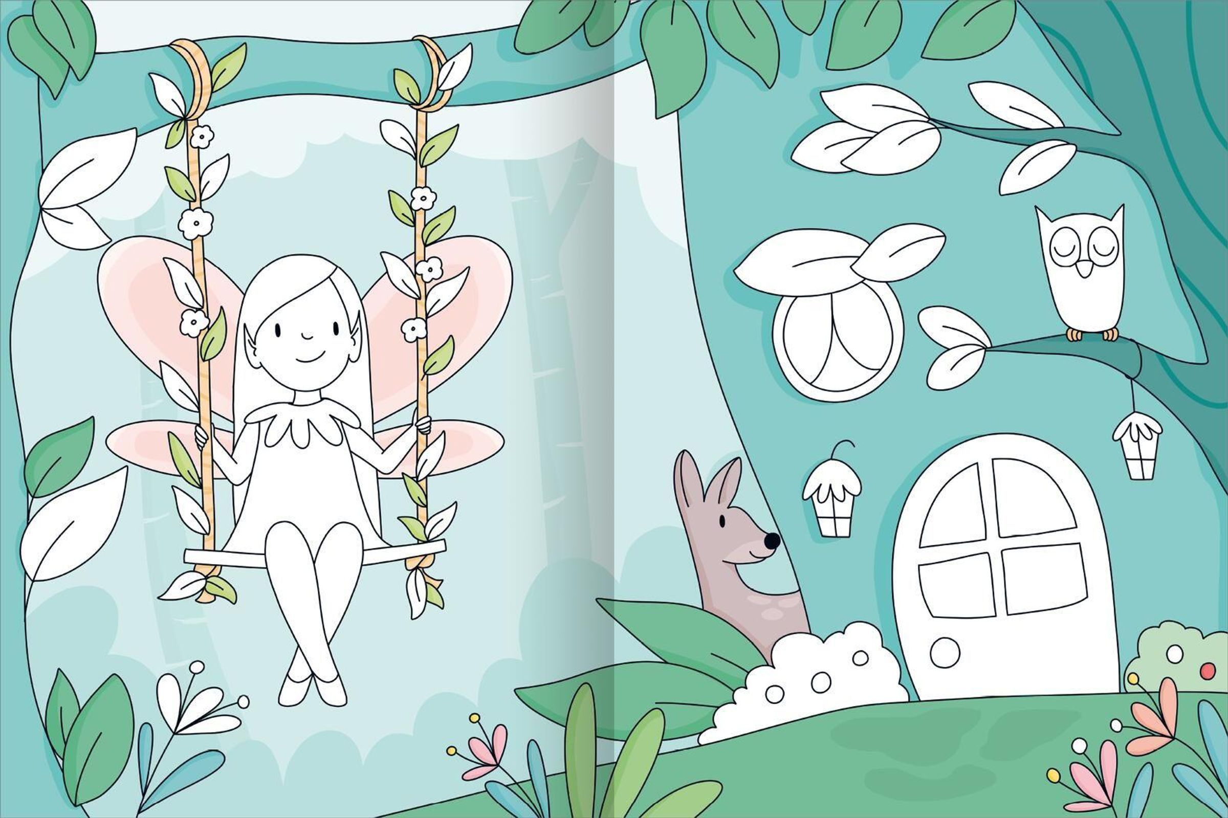 Hier warten zahlreiche wunderbare Szenen rund um die zauberhafte Welt der Feen darauf, von dir kunterbunt angemalt zu werden.