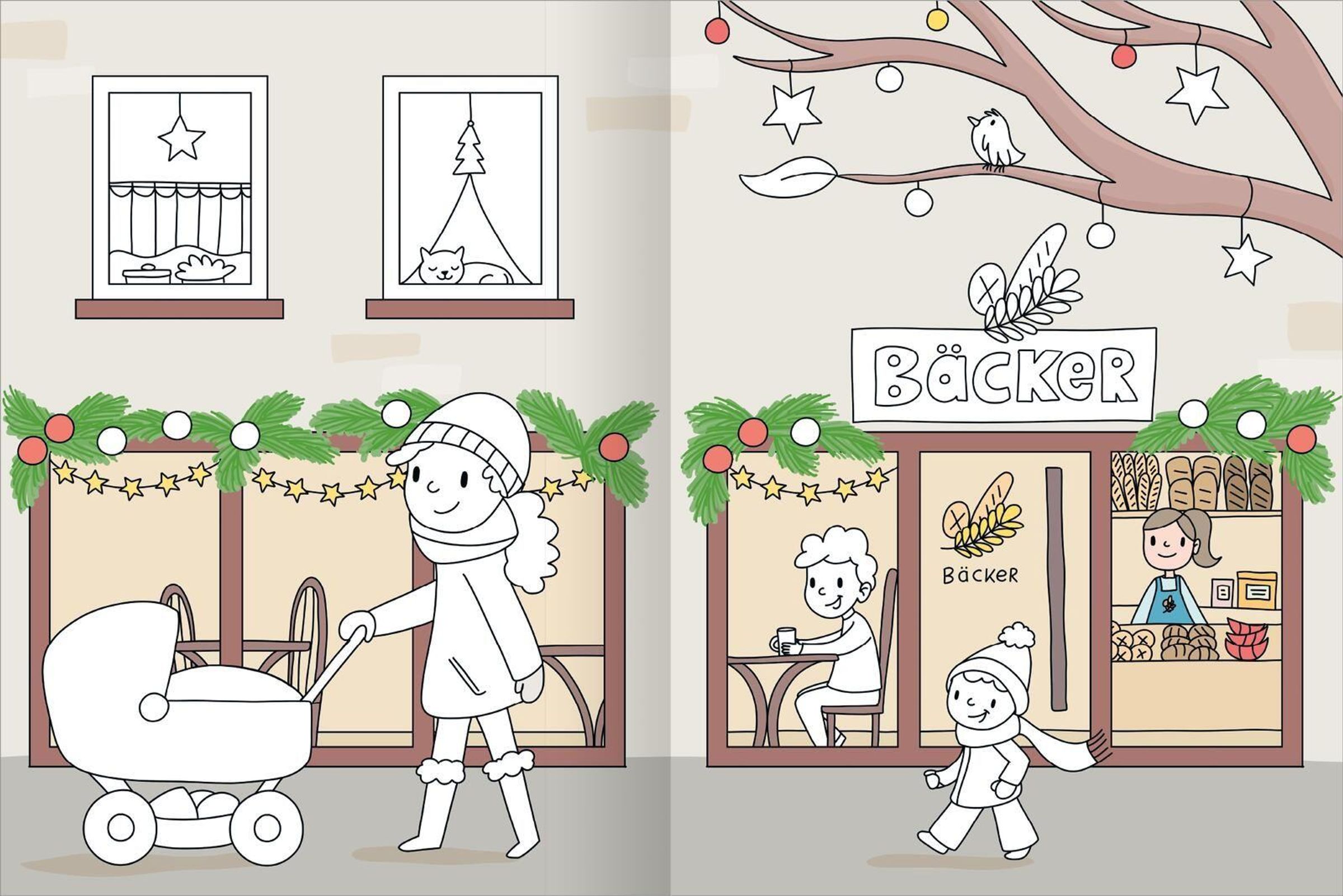 - Farbige Hintergründe: Schwarz-weiß war gestern! Die doppelseitigen Szenen sind bereits bunt gestaltet und laden zum Entdecken und Weitermalen ein