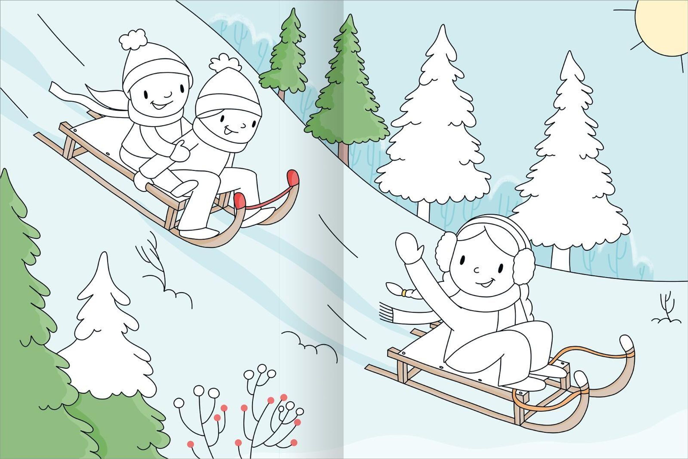 In diesem bunten Malbuch für kleine Ausmalfans ab 3 Jahren tauchst du ein in die kalte Jahreszeit. Ob Schlittenberg, Weihnachtsmarkt oder Tiere im Winterschlaf - alle deine Lieblingsszenen warten darauf, von dir kunterbunt angemalt zu werden.