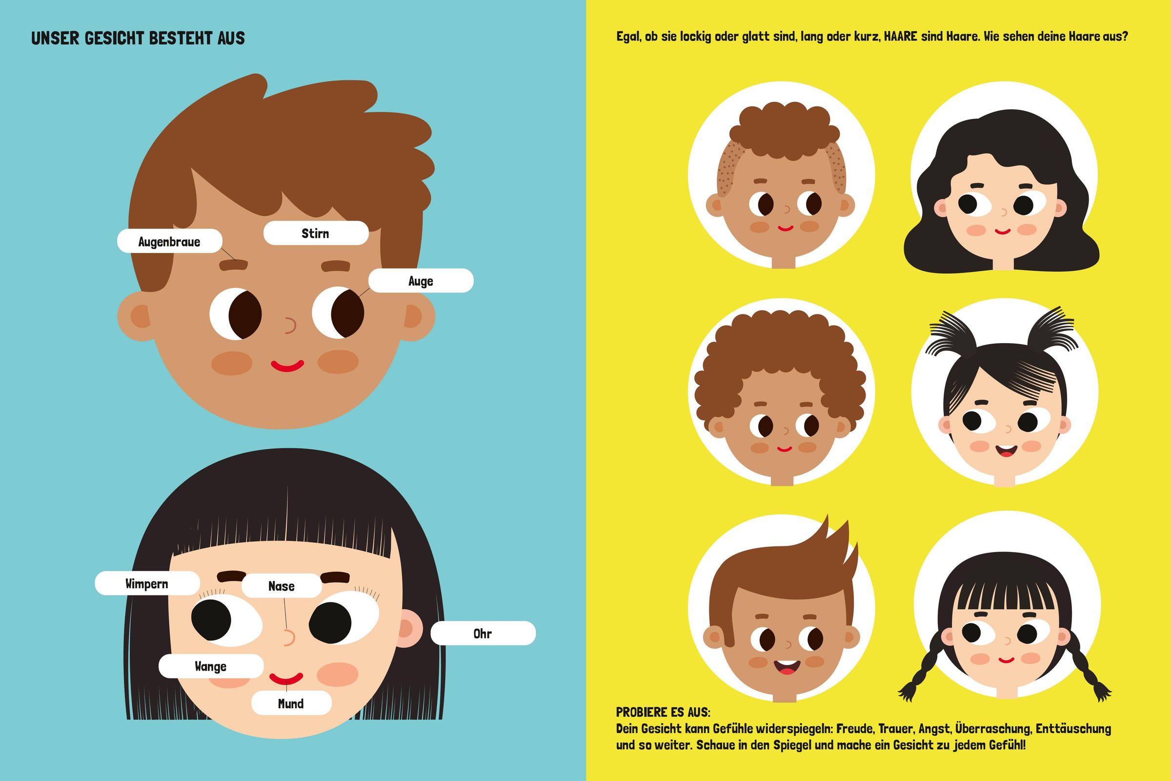 Der menschliche Körper entfacht bei kleinen Kindern eine unendliche Neugier. Komplexe anatomische Strukturen im Detail zu erklären, ist zwar schwierig, doch dieses ansprechende große Pappbilderbuch ist den Kindern bei der Erweiterung ihres Bewusstseins und ihrer Sprache rund um den eigenen Körper behilflich. Es betont die Bedeutung von Inklusivität und zeigt, dass wir trotz unterschiedlicher Erscheinung - Hautfarbe, Haarstruktur und Fähigkeiten - im Wesentlichen alle gleich sind. Mittels einfacher Sprache und bunten Illustrationen macht dieses Buch komplexe Themen leicht zugänglich und unterhaltsam. Es unterstützt Kinder, dass sie lernen, ihre Körperteile zu benennen, und fördert dabei die Neugier auf sich selbst und andere.
