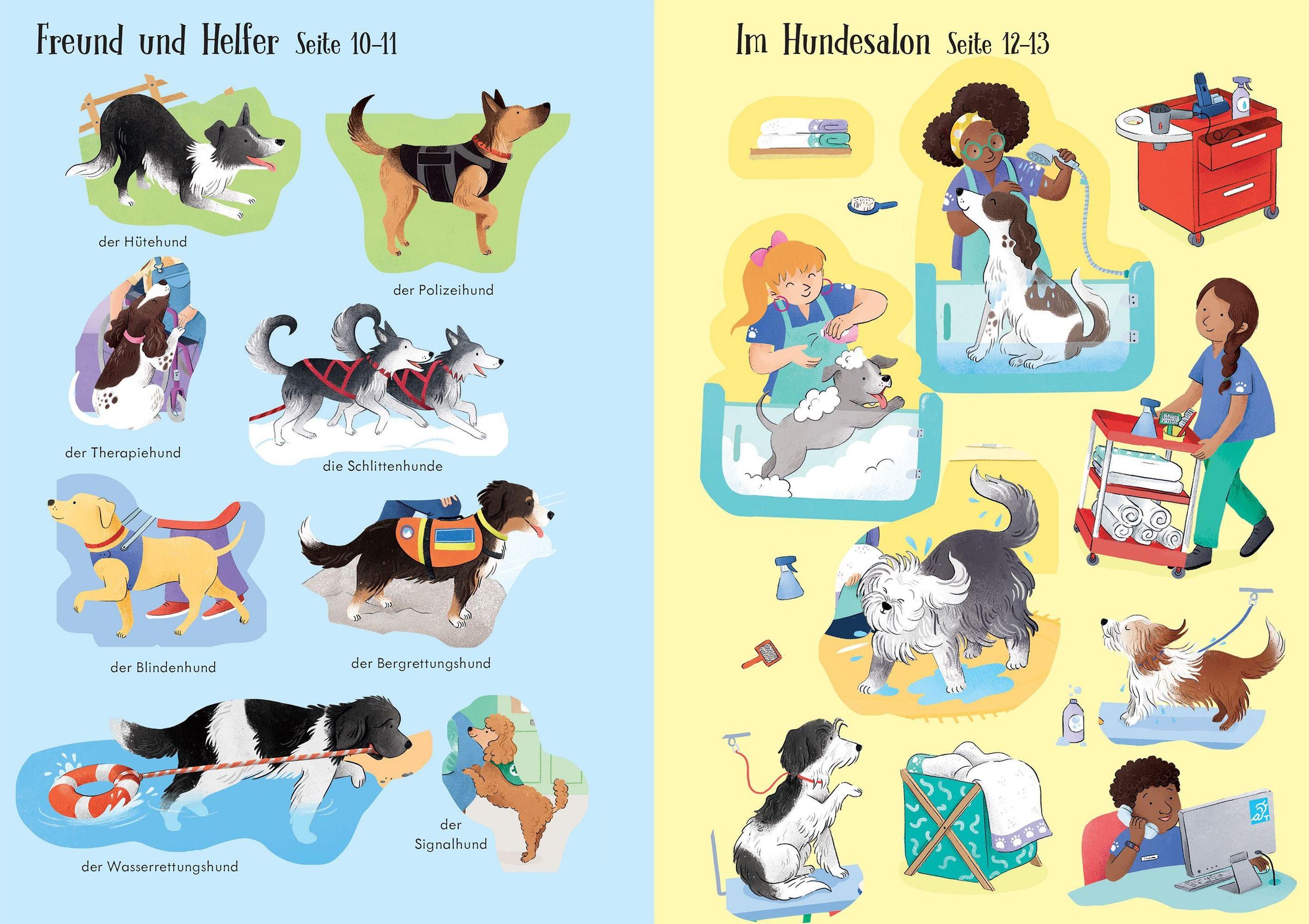 Was braucht man alles, wenn man einen Hund hat? Wie sieht es bei einem Hundefriseur aus? Und wusstest du, dass manche Hunde einen Beruf haben? Mit über 100 wiederablösbaren Stickern kannst du dieses Buch mit niedlichen Welpen und vielen verschiedenen Hunden füllen und dabei einiges über sie erfahren.