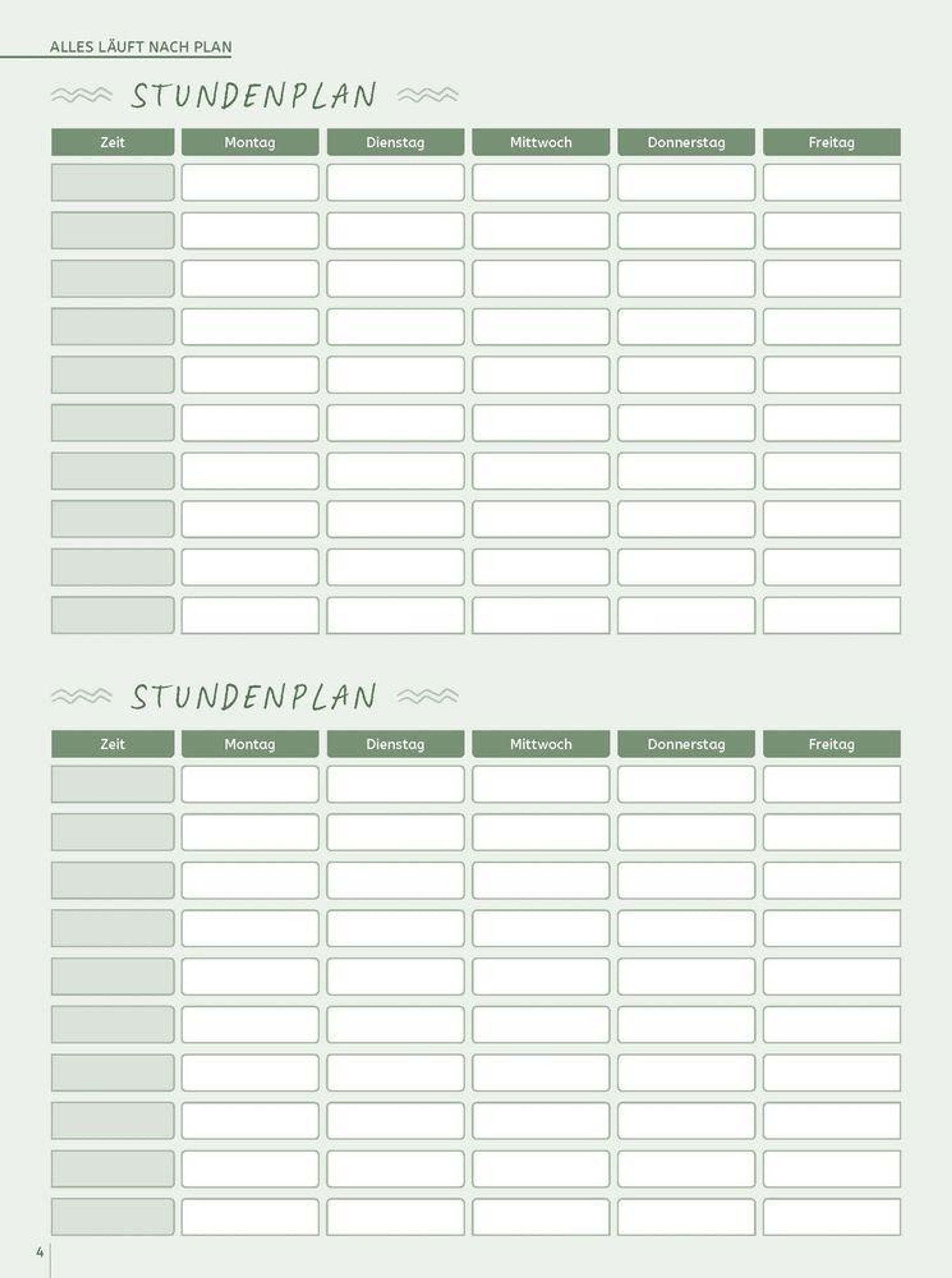 - übersichtlicher Wochenplan mit Platz für jede Schulstunde