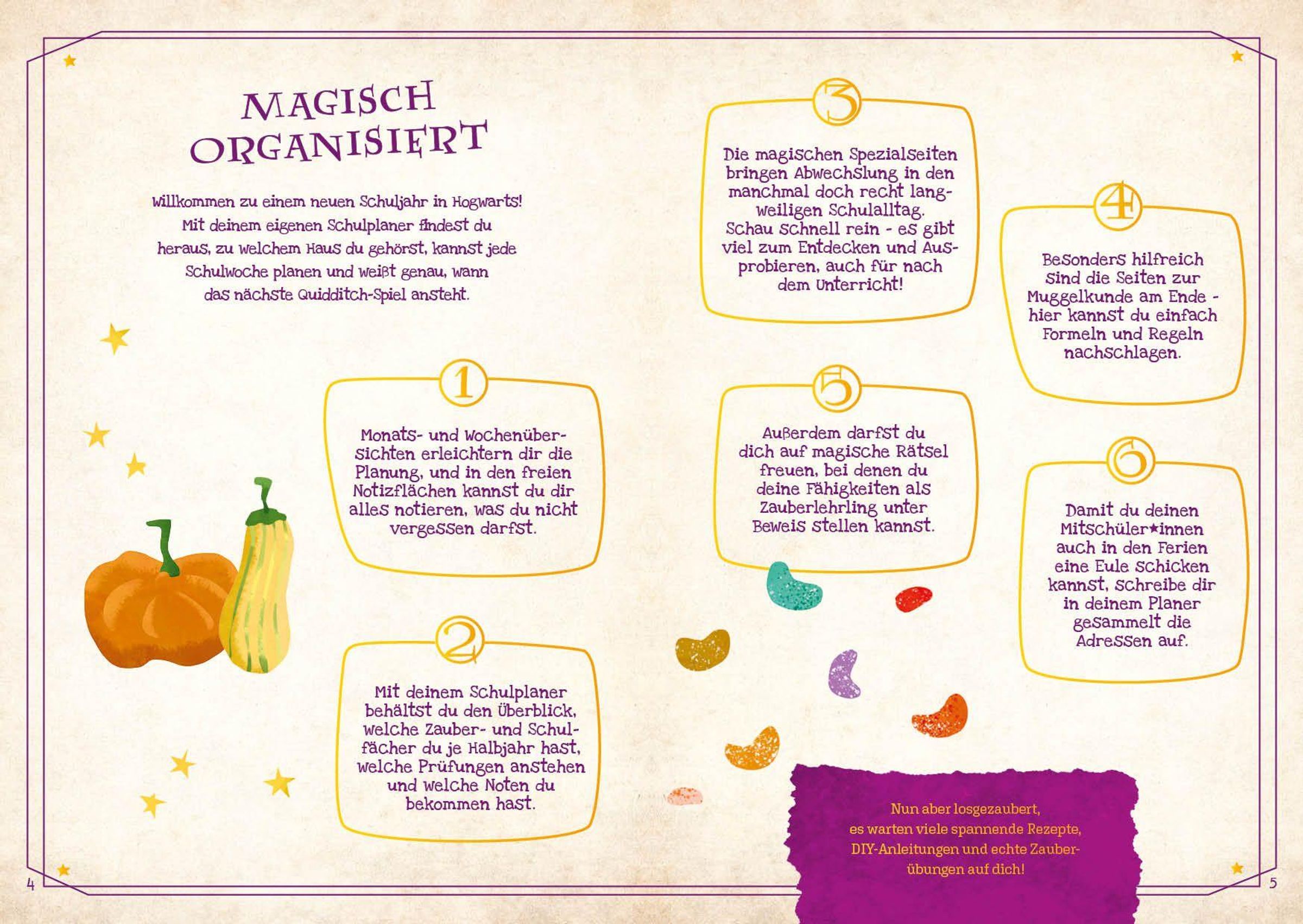 Wo könnte man das neue Schuljahr besser beginnen als an derZauberschule ? Mit dem neuen, magischen Schülerkalender für Harry Potter-Fans bist du für den Schulalltag bestens gewappnet! Hier findest du alles, was du für die Organisation von Klausurenterminen, Hausaufgaben und Projekten benötigst: